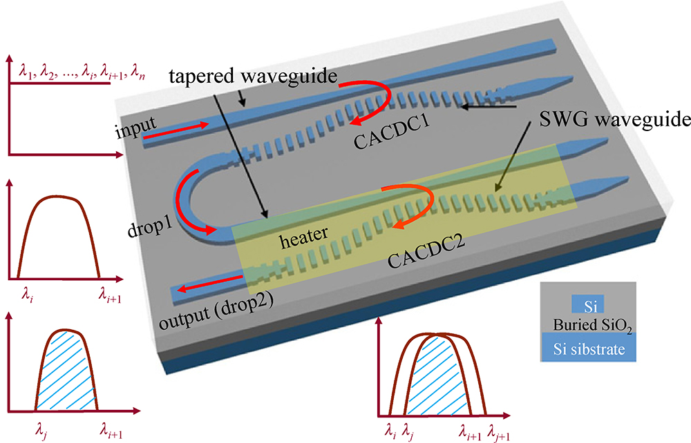 An ultracompact, bandwidth-tunable filter has been demonstrated using a silicon-on-insulator (SOI) wafer. The device is based on cascaded grating-assisted contra-directional couplers (GACDCs). It also involves the use of a subwavelength grating (SWG) structure. By heating one of the heaters on GACDCs, a bandwidth tunability of ~6 nm is achieved. Owing to the benefit of having a large coupling coefficient between SWG and strip waveguides, the length of the coupling region is only 100 μm. Moreover, the combination of the curved SWG and the tapered strip waveguides effectively suppresses the sidelobes. The filter possesses features of simultaneous wavelength tuning with no free spectral range (FSR) limitation. A maximum bandwidth of 10 nm was experimentally measured with a high out-of-band contrast of 25 dB. Similarly, the minimum bandwidth recorded is 4 nm with an out-of-band contrast of 15 dB.