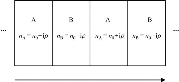 To demonstrate the existence of singular parity-time symmetry (PT-symmetry) broken point in optics system, we designed a one-dimensional PT symmetric structure including N unit-cell with loss and gain materials in half. We performed an analytical deduction to obtain the transmittance and reflectance of the structure basing on Maxwell’s equations. We found that with the exact structure unit-cell number and the imaginary part of refraction index, the transmittance and reflectance are both close to infinite. Such strict condition is called the singular point in this study. At the singular point position, both the transmission and reflection are direction-independent. Away from the singular point, the transmittance and reflectance become finite. In light of classical wave optics, the single unit and total structure both become the resonance units. The infinite transmittance and reflectance result from the resonance matching of single unit and total structure. In light of quantum theory, the singular point corresponds to the single eigenvalue of electromagnetic scattering matrix. The infinite transmittance and reflectance mean a huge energy transformation from pumping source to light waves. Numerical calculation and software simulation both demonstrate the result.