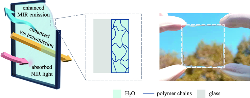 Windows are critically important components in building envelopes that have a significant effect on the integral energy budget. For energy saving, here we propose a novel design of hydrogel-glass which consists of a layer of hydrogel and a layer of normal glass. Compared with traditional glass, the hydrogel-glass possesses a higher level of visible light transmission, stronger near-infrared light blocking, and higher mid-infrared thermal emittance. With these properties, hydrogel-glass based windows can enhance indoor illumination and reduce the temperature, reducing energy use for both lighting and cooling. Energy savings ranging from 2.37 to 10.45 MJ/m2 per year can be achieved for typical school buildings located in different cities around the world according to our simulations. With broadband light management covering the visible and thermal infrared regions of the spectrum, hydrogel-glass shows great potential for application in energy-saving windows.