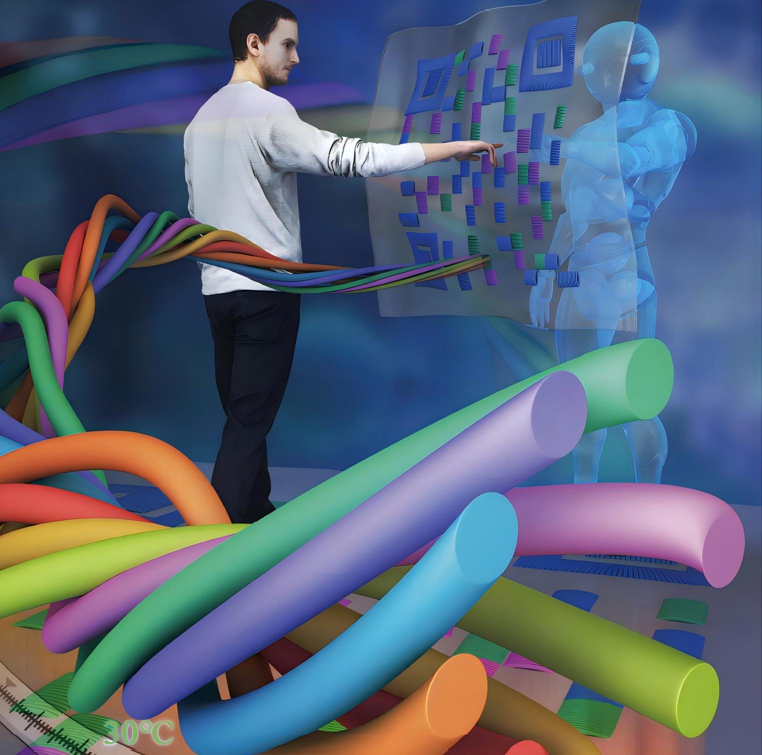 Color-changeable fibers open up a new development direction for an>information display and human-computer interaction due to their flexibility and tunability. In this work, flexible color-changeable fibers were obtained based on the wet spinning process. These fibers had good mechanical properties and the color changes were reversible. They could be fabricated on a large scale to meet the requirements for integrating fabric color display in daily clothing. To demonstrate the application of these fibers, dynamic colored display fabric with QR code was prepared and the color-changeable QR code was successfully recognized, which may find application in social contact, information security, identification, shopping and electronic payment. This research provides more possibilities for the Internet of Things and wearable human-computer interaction interface. For more details, please refer to the article entitled “Flexible thermochromic fabrics enabling dynamic colored display” by Pan Li et al., Front. Optoelectron., 2022, 15(3): 40.