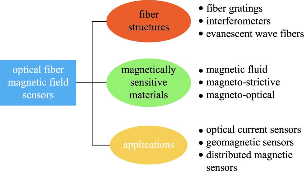 Magnetic field sensing plays an important role in many fields of scientific research and engineering applications. Benefiting from the advantages of optical fibers, the optical fiber-based magnetic field sensors demonstrate characteristics of light weight, small size, remote controllability, reliable security, and wide dynamic ranges. This paper provides an overview of the basic principles, development, and applications of optical fiber magnetic field sensors. The sensing mechanisms of fiber grating, interferometric and evanescent field fiber are discussed in detail. Magnetic fluid materials, magneto-strictive materials, and magneto-optical materials used in optical fiber sensing systems are also introduced. The applications of optical fiber magnetic field sensors as current sensors, geomagnetic monitoring, and quasi-distributed magnetic sensors are presented. In addition, challenges and future development directions are analyzed.
