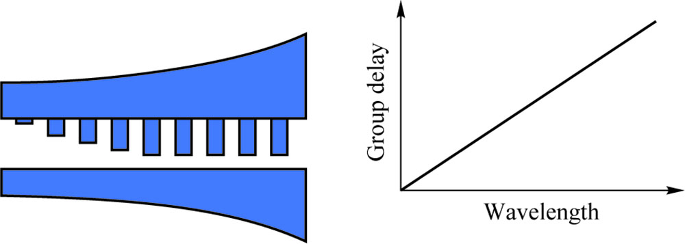 Due to the advantages of low propagation loss, wide operation bandwidth, continuous delay tuning, fast tuning speed, and compact footprints, chirped Bragg grating waveguide has great application potential in wideband phased array beamforming systems. However, the disadvantage of large group delay error hinders their practical applications. The nonlinear group delay spectrum is one of the main factors causing large group delay errors. To solve this problem, waveguides with nonlinear gradient widths are adopted in this study to compensate for the nonlinear effect of the grating apodization on the mode effective index. As a result, a linear group delay spectrum is obtained in the experiment, and the group delay error is halved.
