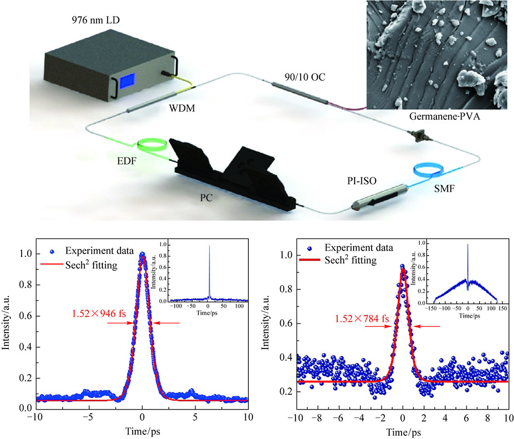 As a member of Xenes family, germanene has excellent nonlinear saturable absorption characteristics. In this work, we prepared germanene nanosheets by liquid phase exfoliation and measured their saturation intensity as 0.6 GW/cm2 with a modulation depth of 8%. Then, conventional solitons with a pulse width of 946 fs and high-energy noise-like pulses with a pulse width of 784 fs were obtained by using germanene nanosheet as a saturable absorber for a mode-locked Erbium-doped fiber laser. The characteristics of the two types of pulses were investigated experimentally. The results reveal that germanene has great potential for modulation devices in ultrafast lasers and can be used as a material for creation of excellent nonlinear optical devices to explore richer applications in ultrafast photonics.