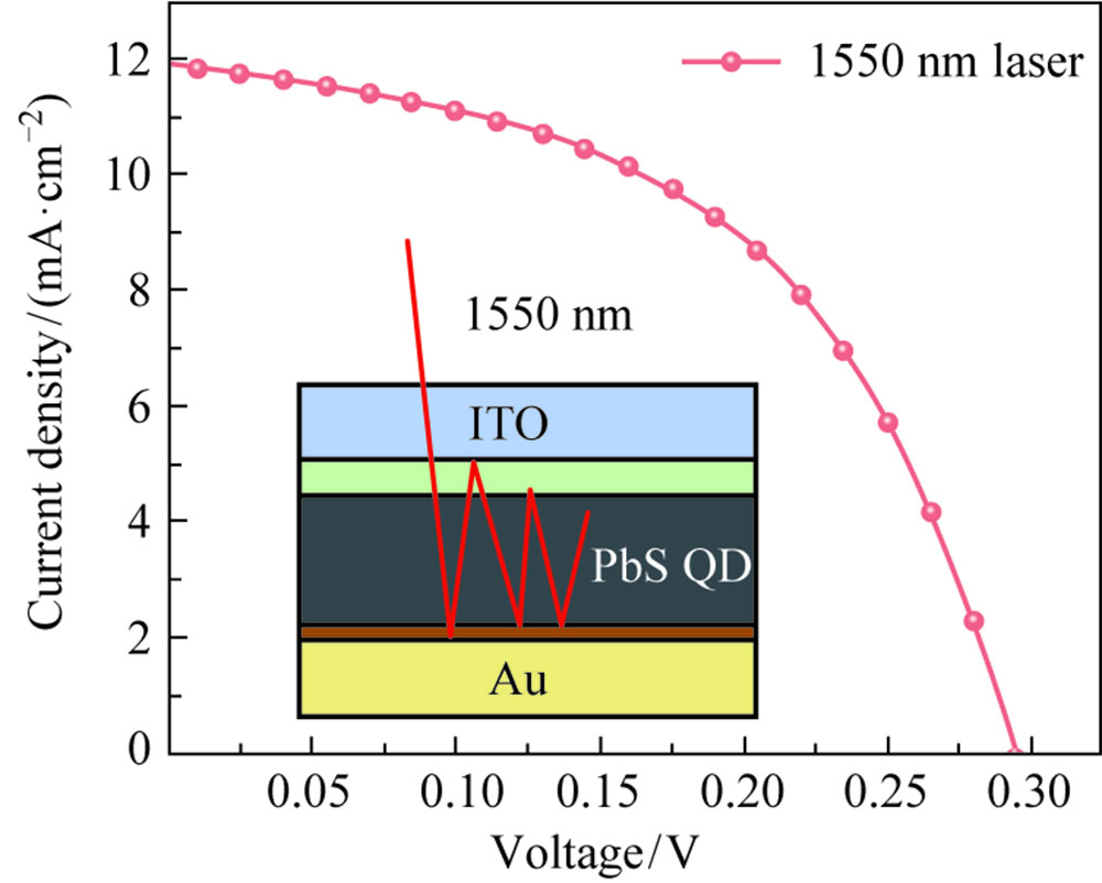 Infrared photovoltaic cells (IRPCs) have attracted considerable attention for potential applications in wireless optical power transfer (WOPT) systems. As an efficient fiber-integrated WOPT system typically uses a 1550 nm laser beam, it is essential to tune the peak conversion efficiency of IRPCs to this wavelength. However, IRPCs based on lead sulfide (PbS) colloidal quantum dots (CQDs) with an excitonic peak of 1550 nm exhibit low short circuit current (Jsc) due to insufficient absorption under monochromatic light illumination. Here, we propose comprehensive optical engineering to optimize the device structure of IRPCs based on PbS CQDs, for 1550 nm WOPT systems. The absorption by the device is enhanced by improving the transmittance of tin-doped indium oxide (ITO) in the infrared region and by utilizing the optical resonance effect in the device. Therefore, the optimized device exhibited a high short circuit current density of 37.65 mA/cm2 under 1 sun (AM 1.5G) solar illumination and 11.91 mA/cm2 under 1550 nm illumination 17.3 mW/cm2. Furthermore, the champion device achieved a record high power conversion efficiency (PCE) of 7.17% under 1 sun illumination and 10.29% under 1550 nm illumination. The PbS CQDs IRPCs under 1550 nm illumination can even light up a liquid crystal display (LCD), demonstrating application prospects in the future.