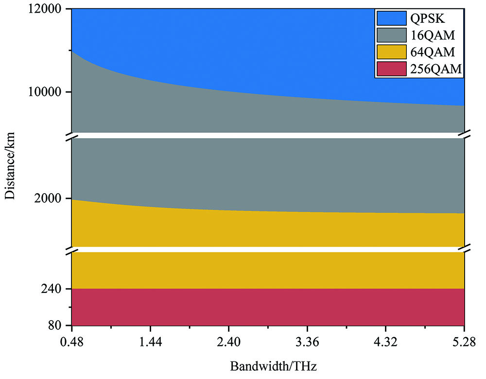 Optical fiber communication networks play an important role in the global telecommunication network. However, nonlinear effects in the optical fiber and transceiver noise greatly limit the performance of fiber communication systems. In this paper, the product of mutual information (MI) and communication bandwidth is used as the metric of the achievable information rate (AIR). The MI loss caused by the transceiver is also considered in this work, and the bit-wise MI, generalized mutual information (GMI), is used to calculate the AIR. This loss is more significant in the use of higher-order modulation formats. The AIR analysis is carried out in the QPSK, 16QAM, 64QAM and 256QAM modulation formats for the communication systems with different communication bandwidths and transmission distances based on the enhanced Gaussian noise (EGN) model. The paper provides suggestions for the selection of the optimal modulation format in different transmission scenarios.