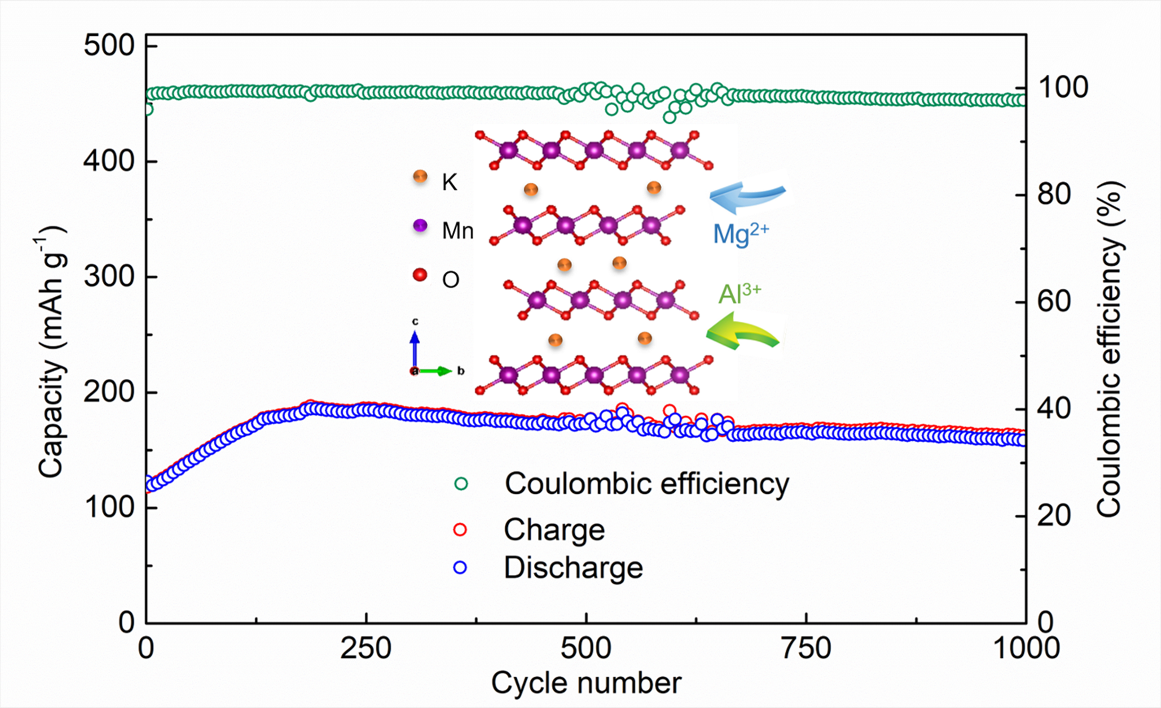 Manganese dioxide (MnO2), as a cathode material for multivalent ion (such as Mg2+ and Al3+) storage, is investigated due to its high initial capacity. However, during multivalent ion insertion/extraction, the crystal structure of MnO2 partially collapses, leading to fast capacity decay in few charge/discharge cycles. Here, through pre-intercalating potassium-ion (K+) into δ-MnO2, we synthesize a potassium ion pre-intercalated MnO2, K0.21MnO2·0.31H2O (KMO), as a reliable cathode material for multivalent ion batteries. The as-prepared KMO exhibits a high reversible capacity of 185 mAh/g at 1 A/g, with considerable rate performance and improved cycling stability in 1 mol/L MgSO4 electrolyte. In addition, we observe that aluminum-ion (Al3+) can also insert into a KMO cathode. This work provides a valid method for modification of manganese-based oxides for aqueous multivalent ion batteries.