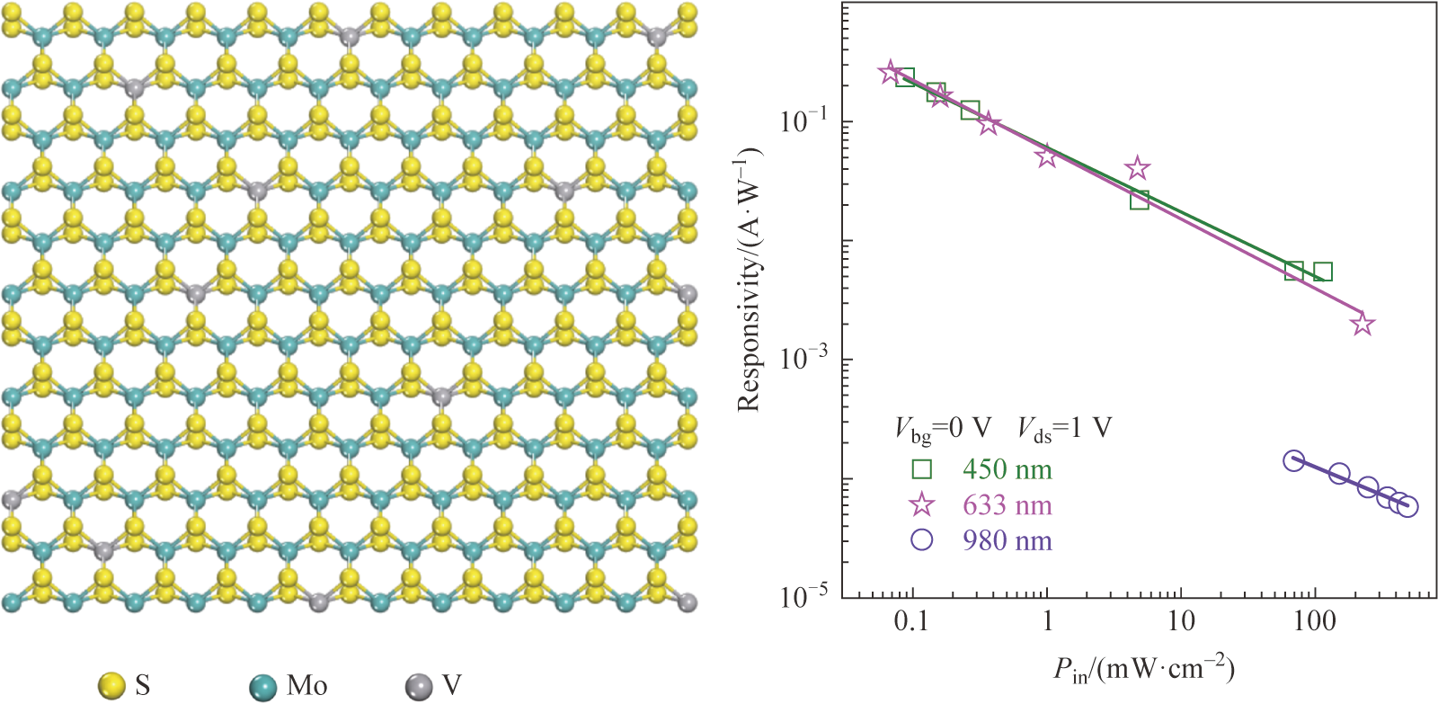 Dynamically engineering the optical and electrical properties in two-dimensional (2D) materials is of great significance for designing the related functions and applications. The introduction of foreign-atoms has previously been proven to be a feasible way to tune the band structure and related properties of 3D materials; however, this approach still remains to be explored in 2D materials. Here, we systematically demonstrate the growth of vanadium-doped molybdenum disulfide (V-doped MoS2) monolayers via an alkali metal-assisted chemical vapor deposition method. Scanning transmission electron microscopy demonstrated that V atoms substituted the Mo atoms and became uniformly distributed in the MoS2 monolayers. This was also confirmed by Raman and X-ray photoelectron spectroscopy. Power-dependent photoluminescence spectra clearly revealed the enhanced B-exciton emission characteristics in the V-doped MoS2 monolayers (with low doping concentration). Most importantly, through temperature-dependent study, we observed efficient valley scattering of the B-exciton, greatly enhancing its emission intensity. Carrier transport experiments indicated that typical p-type conduction gradually arisen and was enhanced with increasing V composition in the V-doped MoS2, where a clear n-type behavior transited first to ambipolar and then to lightly p-type charge carrier transport. In addition, visible to infrared wide-band photodetectors based on V-doped MoS2 monolayers (with low doping concentration) were demonstrated. The V-doped MoS2 monolayers with distinct B-exciton emission, enhanced p-type conduction and broad spectral response can provide new platforms for probing new physics and offer novel materials for optoelectronic applications.