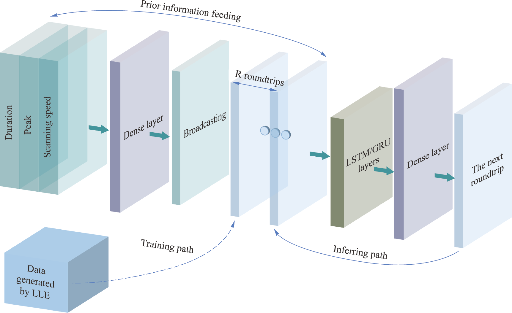 Kerr resonator is one of the most popular platforms to produce optical frequency comb and temporal cavity soliton. As an essential method for investigating the nonlinear dynamics of Kerr resonators, traditional numerical simulations rely on solving the Lugiato-Lefever equation (LLE) using the split-step Fourier method (SSFM), which is computationally intensive and time-consuming. To address this challenge, this study proposes a recurrent neural network model with prior information feedback, enabling efficient and accurate prediction of soliton dynamics in Kerr resonator. With the acceleration of graphics processing unit (GPU), the computational efficiency improved by 20 times. We compared various recurrent neural networks and found that the gated recurrent unit (GRU) network demonstrated superior performance in this task. This work highlights the potential of artificial intelligence (AI) for modeling nonlinear optical dynamics in Kerr resonator, paving the way for designing optical frequency comb and generating ultrafast pulse.