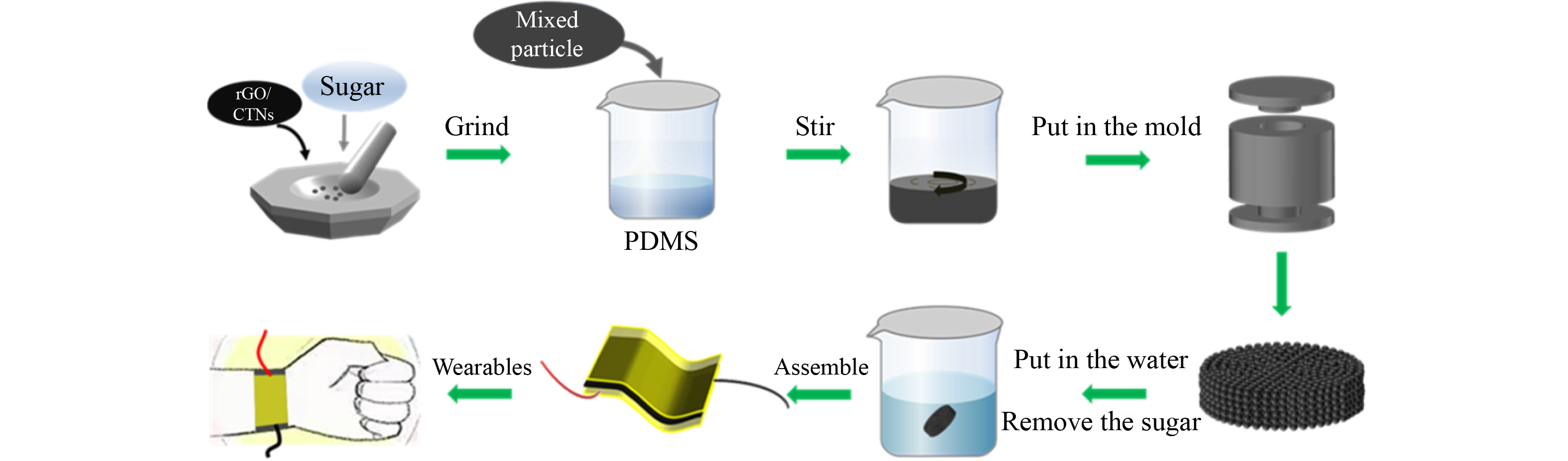 Fabrication of elastic pressure sensors with low cost, high sensitivity, and mechanical durability is important for wearables, electronic skins and soft robotics. Here, we develop high-sensitivity porous elastomeric sensors for piezoresistive and capacitive pressure detection. Specifically, a porous polydimethylsiloxane (PDMS) sponge embedded with conductive fillers of carbon nanotubes (CNTs) or reduced graphene oxide (rGO) was fabricated by an in-situ sugar template strategy. The sensor demonstrates sensitive deformation to applied pressure, exhibiting large and fast response in resistance or capacitance for detection of a wide range of pressure (0‒5 kPa). PDMS, as a high-elasticity framework, enables creation of sensors with high sensitivity, excellent stability, and durability for long-term usage. The highest sensitivities of 22.1 and 68.3 kPa−1 can be attained by devices with 5% CNTs and 4% rGO, respectively. The geometrics of the sponge sensor is tailorable using tableting technology for different applications. The sensors demonstrate finger motion detection and heart-rate monitoring in real-time, as well as a capacitive sensor array for identification of pressure and shape of placed objects, exhibiting good potential for wearables and human-machine interactions.