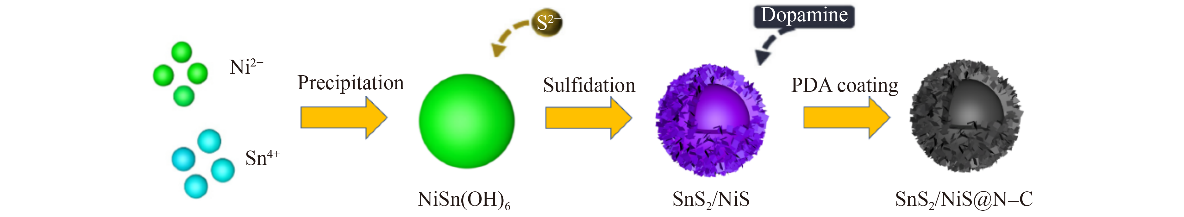 Nitrogen-doped carbon-coated hollow SnS2/NiS (SnS2/NiS@N–C) microflowers were obtained using NiSn(OH)6 nanospheres as the template via a solvent-thermal method followed by the polydopamine coating and carbonization process. When served as an anode material for lithium-ion batteries, such hollow SnS2/NiS@N–C microflowers exhibited a capacity of 403.5 mAh·g−1 at 2.0 A·g−1 over 200 cycles and good rate performance. The electrochemical reaction kinetics of this anode was analyzed, and the morphologies and structures of anode materials after the cycling test were characterized. The high stability and good rate performance were mainly due to bimetallic synergy, hollow micro/nanostructure, and nitrogen-doped carbon layers. The revealed excellent electrochemical energy storage properties of hollow SnS2/NiS@N–C microflowers in this study highlight their potential as the anode material.