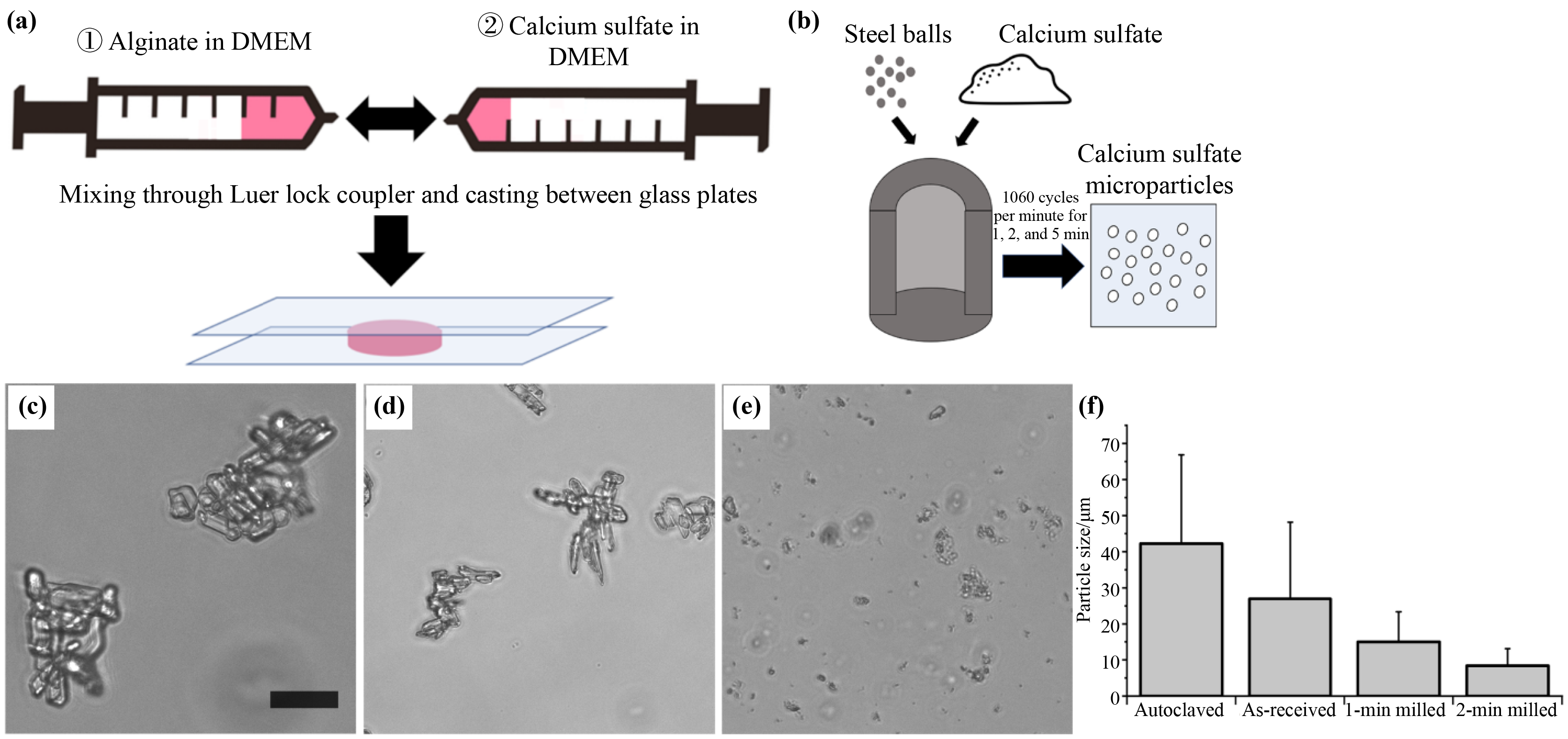 Calcium ion-crosslinked alginate hydrogels are widely used as a materials system for investigating cell behavior in 3D environments in vitro. Suspensions of calcium sulfate particles are often used as the source of Ca2+ to control the rate of gelation. However, the instability of calcium sulfate suspensions can increase chances of reduced homogeneity of the resulting gel and requires researcher’s proficiency. Here, we show that ball-milled calcium sulfate microparticles (MPs) with smaller sizes can create more stable crosslinker suspensions than unprocessed or simply autoclaved calcium sulfate particles. In particular, 15 µm ball-milled calcium sulfate MPs result in gels that are more homogeneous with a balanced gelation rate, which facilitates fabrication of gels with consistent mechanical properties and reliable performance for 3D cell culture. Overall, these MPs represent an improved method for alginate hydrogel fabrication that can increase experimental reliability and quality for 3D cell culture.