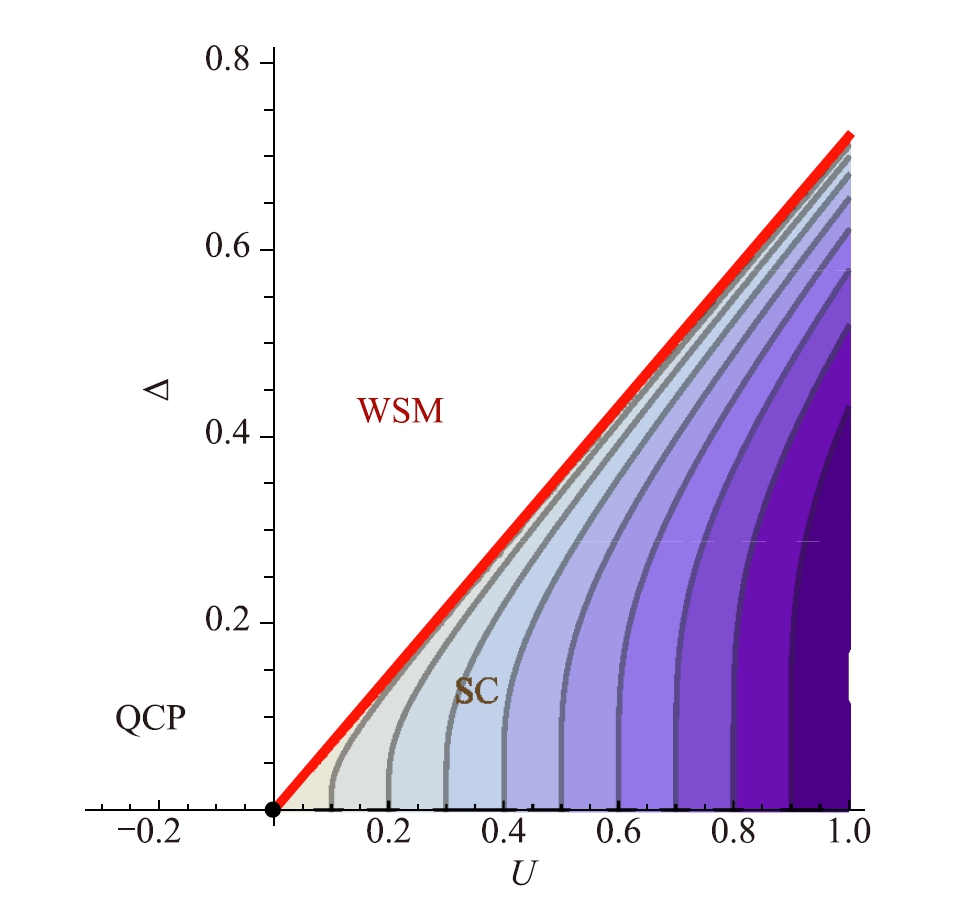 New two-dimensional systems such as the surfaces of topological insulators (TIs) and graphene offer the possibility of experimentally investigating situations considered exotic just a decade ago. These situations include the quantum phase transition of the chiral type in electronic systems with a relativistic spectrum. Phonon-mediated (conventional) pairing in the Dirac semimetal appearing on the surface of a TI causes a transition into a chiral superconducting state, and exciton condensation in these gapless systems has long been envisioned in the physics of narrow-band semiconductors. Starting from the microscopic Dirac Hamiltonian with local attraction or repulsion, the Bardeen–Cooper–Schrieffer type of Gaussian approximation is developed in the framework of functional integrals. It is shown that owing to an ultrarelativistic dispersion relation, there is a quantum critical point governing the zero-temperature transition to a superconducting state or the exciton condensed state. Quantum transitions having critical exponents differ greatly from conventional ones and belong to the chiral universality class. We discuss the application of these results to recent experiments in which surface superconductivity was found in TIs and estimate the feasibility of phonon pairing.