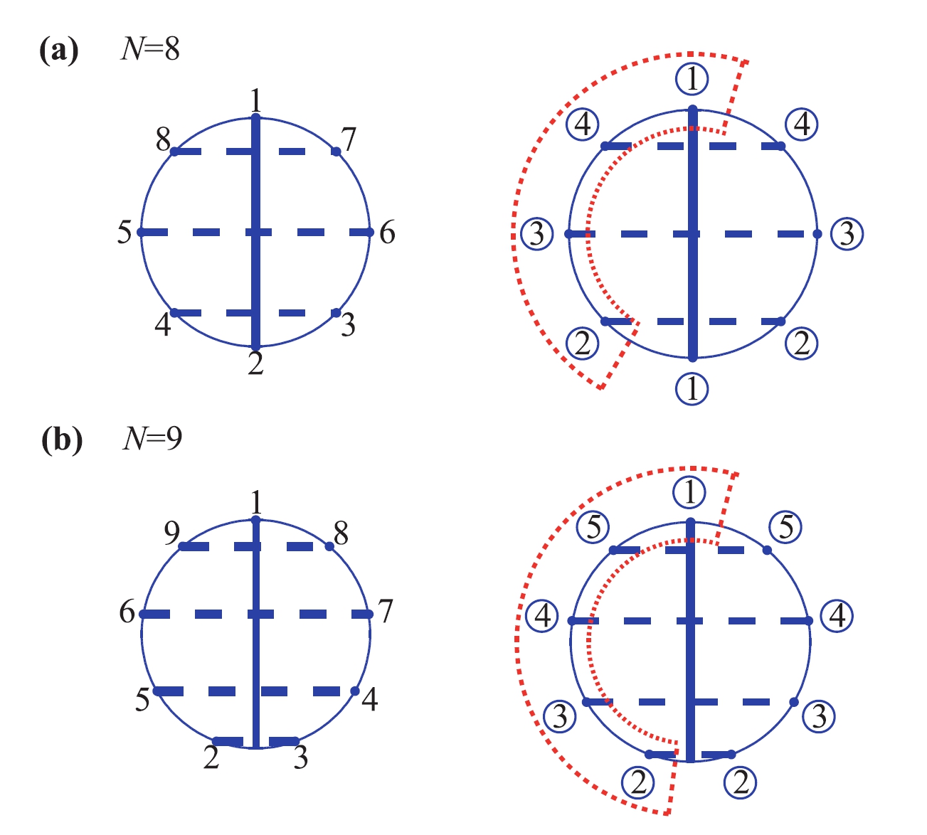 The parameter diversity effect in coupled nonidentical elements has attracted persistent interest in nonlinear dynamics. Of fundamental importance is the so-called optimal configuration problem for how the spatial position of elements with different parameters precisely determines the dynamics of the whole system. In this work, we study the optimal configuration problem for the vibration spectra in the classical mass–spring model with a ring configuration, paying particular attention to how the configuration of different masses affects the second smallest vibration frequency (ω2) and the largest one (ωN). For the extreme values of ω2 and ωN, namely, (ω2)min, (ω2)max, (ωN)min, and (ωN)max, we find some explicit organization rules for the optimal configurations and some approximation rules when the explicit organization rules are not available. The different distributions of ω2 and ωNare compared. These findings are interesting and valuable for uncovering the underlying mechanism of the parameter diversity effect in more general cases.