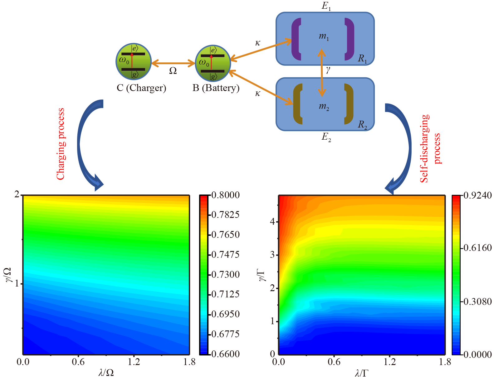 Download coverHow to improve charging processes and suppress self-discharging processes has always been one of the key issues to achieve quantum batteries with high performance. Although a quantum battery is inevitably influenced by composite environments, this situation is still little understood, particularly regarding the influence of the memory effect of the composite environments and the coupling between composite environments. In this work, we investigate the effects of the composite environments, composed of two identical parts each containing a single cavity mode decaying to a reservoir, on the charging and self-discharging processes of a quantum battery. We show that increasing the two-mode coupling can effectively enhance the charging performance (i.e., the stored energy, the charging power, ergotropy) and restrain the self-discharging process (i.e., suppressing the process of dissipating the energy). However, different from the effect of two-mode coupling, we reveal that the memory effect of the reservoir in this composite environment is unfavorable to the charging process of the quantum battery, which is in sharp contrast to previous studies where the memory effect can significantly improve the charging performance of a quantum battery. Our results may benefit to the realization of quantum batteries with high performance under the actual complex environmental noise.