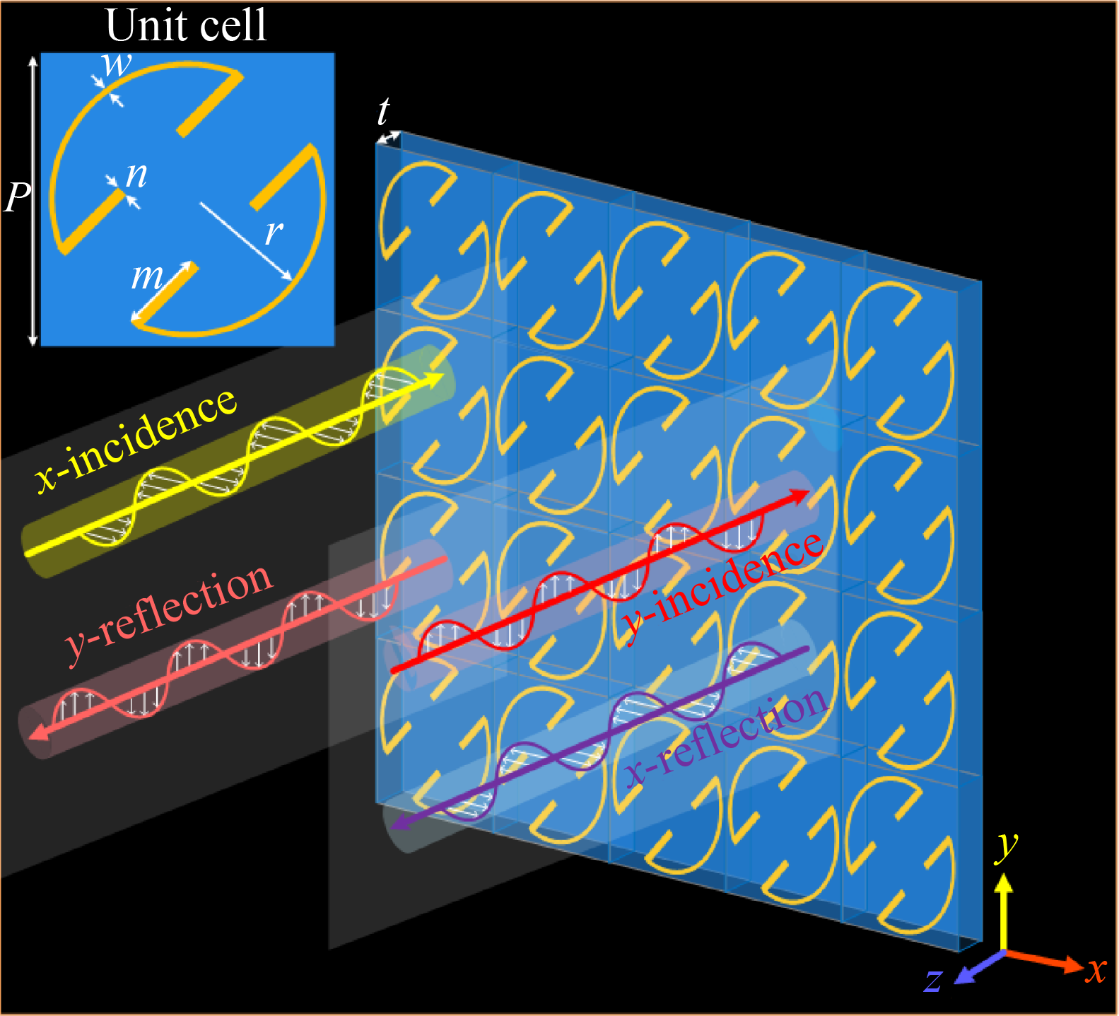 Pancharatnam−Berry (PB) phase metasurface, as a special class of gradient metasurfaces, has been paid much attention owing to the robust performance for phase control of circularly polarized waves. Herein, we present an element-based polarizer for the first step, which enables the incident electromagnetic waves into the cross-polarized waves with the relative bandwidth of 71%, and the polarization conversion ratio exceeds 90% at 6.9−14.5 GHz. Then an eight-elements coding polarizer based on the PB phase is presented for the applications on beam control and radar cross section reduction. The simulated values indicate that the reduction of radar cross section is more than 10 dB at 6−16 GHz. Our work reveals the availability of manipulating the waves, beamforming in communication systems and electromagnetic stealth, and so on.