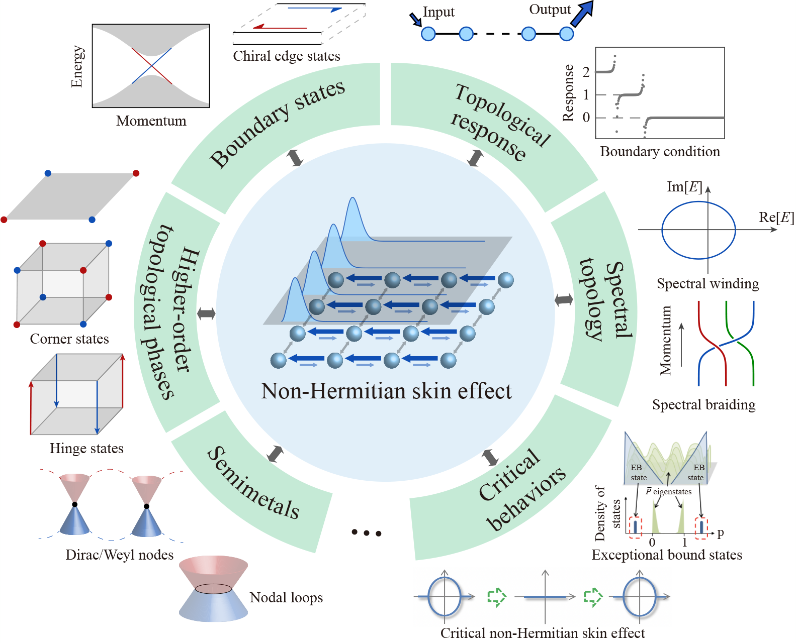 This article reviews recent developments in the non-Hermitian skin effect (NHSE), particularly on its rich interplay with topology. The review starts off with a pedagogical introduction on the modified bulk-boundary correspondence, the synergy and hybridization of NHSE and band topology in higher dimensions, as well as, the associated topology on the complex energy plane such as spectral winding topology and spectral graph topology. Following which, emerging topics are introduced such as non-Hermitian criticality, dynamical NHSE phenomena, and the manifestation of NHSE beyond the traditional linear non-interacting crystal lattices, particularly its interplay with quantum many-body interactions. Finally, we survey the recent demonstrations and experimental proposals of NHSE.