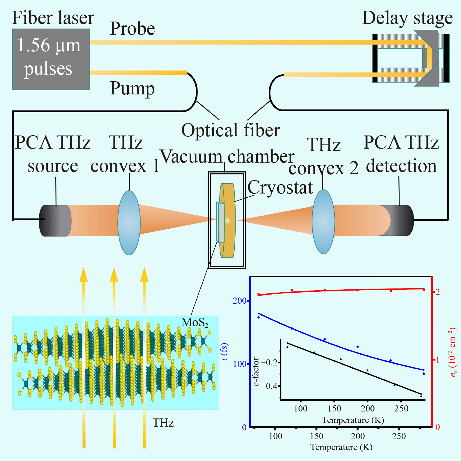 Bilayer (BL) molybdenum disulfide (MoS2) is one of the most important electronic structures not only in valleytronics but also in realizing twistronic systems on the basis of the topological mosaics in moiré superlattices. In this work, BL MoS2 on sapphire substrate with 2H-stacking structure is fabricated. We apply the terahertz (THz) time-domain spectroscopy (TDS) for examining the basic optoelectronic properties of this kind of BL MoS2. The optical conductivity of BL MoS2 is obtained in temperature regime from 80 K to 280 K. Through fitting the experimental data with the theoretical formula, the key sample parameters of BL MoS2 can be determined, such as the electron density, the electronic relaxation time and the electronic localization factor. The temperature dependence of these parameters is examined and analyzed. We find that, similar to monolayer (ML) MoS2, BL MoS2 with 2H-stacking can respond strongly to THz radiation field and show semiconductor-like optoelectronic features. The theoretical calculations using density functional theory (DFT) can help us to further understand why the THz optoelectronic properties of BL MoS2 differ from those observed for ML MoS2. The results obtained from this study indicate that the THz TDS can be applied suitably to study the optoelectronic properties of BL MoS2 based twistronic systems for novel applications as optical and optoelectronic materials and devices.