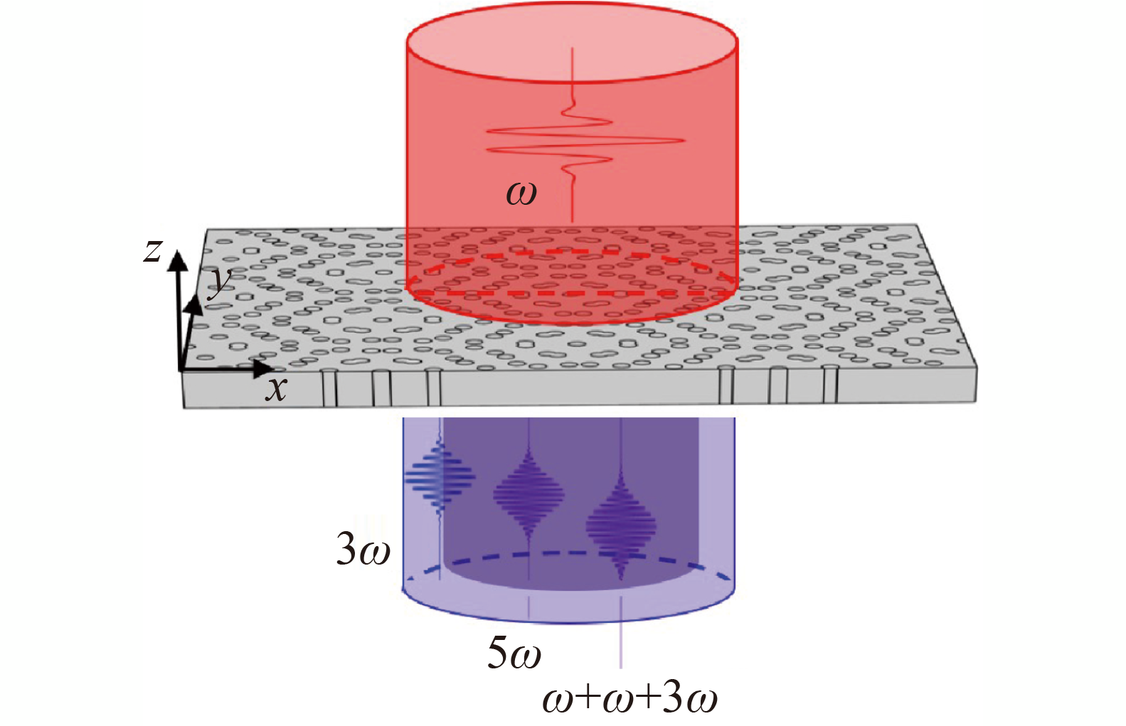 Photonic moiré superlattice as an emerging platform of flatbands can tightly confine the light inside the cavity and has important applications not only in linear optics but also in nonlinear optics. In this paper, we numerically investigate the third- and fifth-order harmonic generation (THG and FHG) in photonic moiré superlattices fabricated by the nonlinear material silicon. The high conversion efficiency of THG and FHG is obtained at a relatively low intensity of fundamental light, e.g., the maximum conversion efficiency of THG and FHG arrives even up to be 10−2 and 10−9 at the fundamental intensity of 30 kW/m2, respectively, in the moiré superlattice of near flat band formed by the twist angle 6.01°. The results indicate the photonic moiré superlattice of a high-quality factor and flatbands is a promising platform for efficient nonlinear processes and advanced photonic devices.