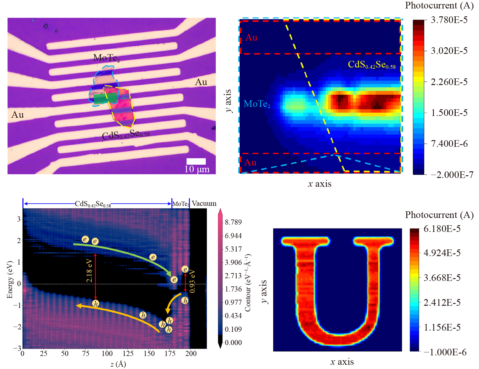 Two-dimensional (2D) transition metal dichalcogenides have been extensively studied due to their fascinating physical properties for constructing high-performance photodetectors. However, their relatively low responsivities, current on/off ratios and response speeds have hindered their widespread application. Herein, we fabricated a high-performance photodetector based on few-layer MoTe2 and CdS0.42Se0.58 flake heterojunctions. The photodetector exhibited a high responsivity of 7221 A/W, a large current on/off ratio of 1.73×104, a fast response speed of 90/120 μs, external quantum efficiency (EQE) reaching up to 1.52×106 % and detectivity (D*) reaching up to 1.67×1015 Jones. The excellent performance of the heterojunction photodetector was analyzed by a photocurrent mapping test and first-principle calculations. Notably, the visible light imaging function was successfully attained on the MoTe2/CdS0.42Se0.58 photodetectors, indicating that the device had practical imaging application prospects. Our findings provide a reference for the design of ultrahigh-performance MoTe2-based photodetectors.