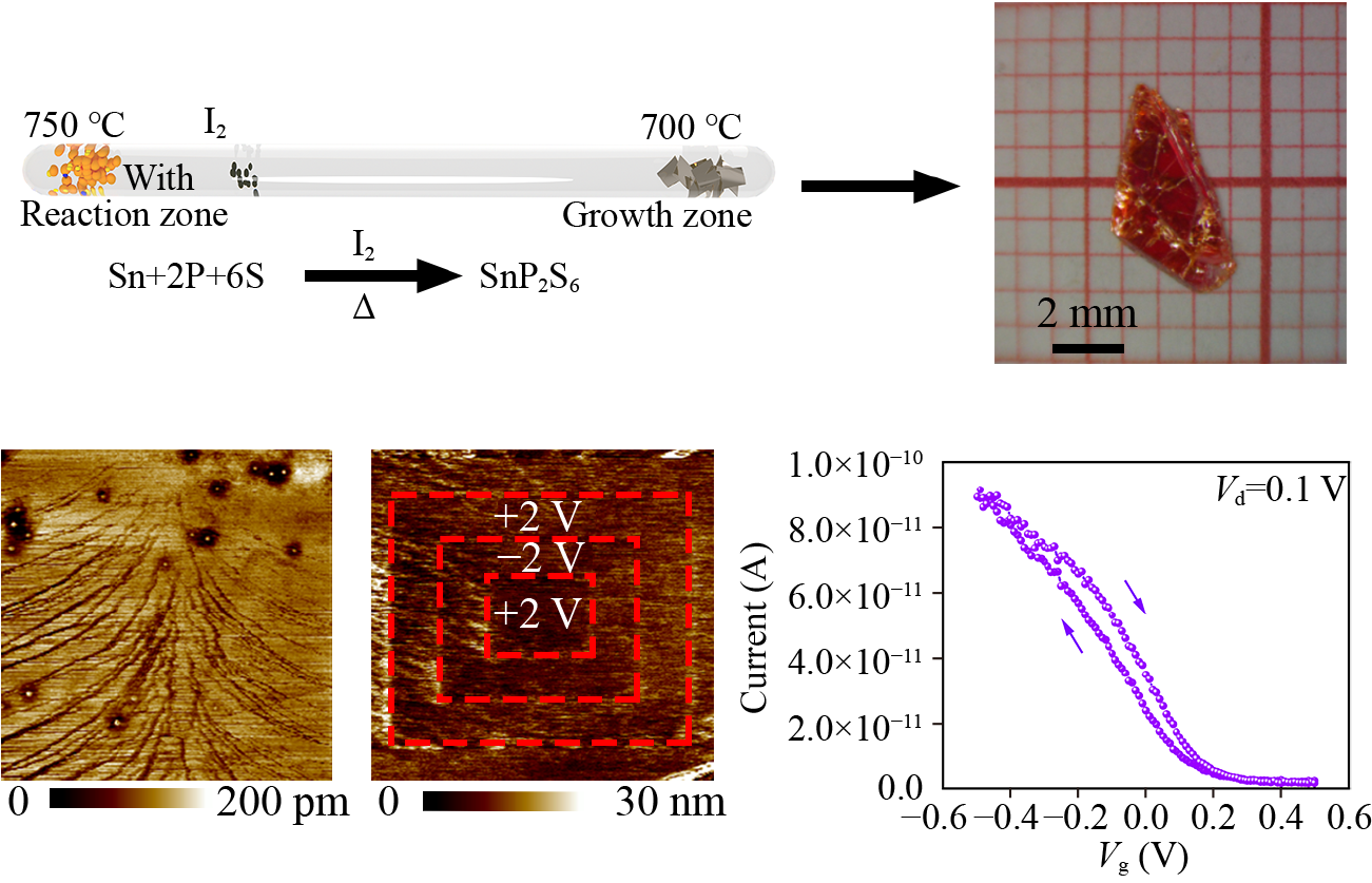 Two-dimensional (2D) ferroelectric materials, which possess electrically switchable spontaneous polarization and can be easily integrated with semiconductor technologies, is of utmost importance in the advancement of high-integration low-power nanoelectronics. Despite the experimental discovery of certain 2D ferroelectric materials such as CuInP2S6 and In2Se3, achieving stable ferroelectricity at room temperature in these materials continues to present a significant challenge. Herein, stable ferroelectric order at room temperature in the 2D limit is demonstrated in van der Waals SnP2S6 atom layers, which can be fabricated via mechanical exfoliation of bulk SnP2S6 crystals. Switchable polarization is observed in thin SnP2S6 of ~7 nm. Importantly, a van der Waals ferroelectric field-effect transistor (Fe-FET) with ferroelectric SnP2S6 as top-gate insulator and p-type WTe0.6Se1.4 as the channel was designed and fabricated successfully, which exhibits a clear clockwise hysteresis loop in transfer characteristics, demonstrating ferroelectric properties of SnP2S6 atomic layers. In addition, a multilayer graphene/SnP2S6/multilayer graphene van der Waals vertical heterostructure phototransistor was also fabricated successfully, exhibiting improved optoelectronic performances with a responsivity (R) of 2.9 A/W and a detectivity (D) of 1.4 × 1012 Jones. Our results show that SnP2S6 is a promising 2D ferroelectric material for ferroelectric-integrated low-power 2D devices.