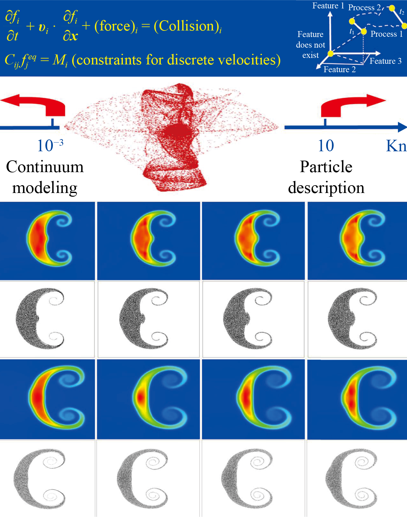 The study of macro continuous flow has a long history. Simultaneously, the exploration of heat and mass transfer in small systems with a particle number of several hundred or less has gained significant interest in the fields of statistical physics and nonlinear science. However, due to absence of suitable methods, the understanding of mesoscale behavior situated between the aforementioned two scenarios, which challenges the physical function of traditional continuous fluid theory and exceeds the simulation capability of microscopic molecular dynamics method, remains considerably deficient. This greatly restricts the evaluation of effects of mesoscale behavior and impedes the development of corresponding regulation techniques. To access the mesoscale behaviors, there are two ways: from large to small and from small to large. Given the necessity to interface with the prevailing macroscopic continuous modeling currently used in the mechanical engineering community, our study of mesoscale behavior begins from the side closer to the macroscopic continuum, that is from large to small. Focusing on some fundamental challenges encountered in modeling and analysis of near-continuous flows, we review the research progress of discrete Boltzmann method (DBM). The ideas and schemes of DBM in coarse-grained modeling and complex physical field analysis are introduced. The relationships, particularly the differences, between DBM and traditional fluid modeling as well as other kinetic methods are discussed. After verification and validation of the method, some applied researches including the development of various physical functions associated with discrete and non-equilibrium effects are illustrated. Future directions of DBM related studies are indicated.