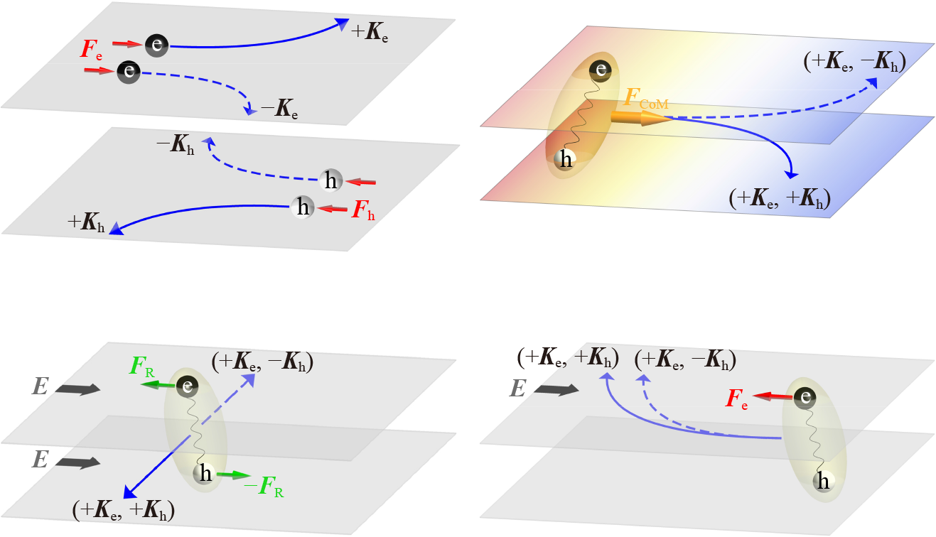We theoretically studied the exciton geometric structure in layered semiconducting transition metal dichalcogenides. Based on a three-orbital tight-binding model for Bloch electrons which incorporates their geometric structures, an effective exciton Hamiltonian is constructed and solved perturbatively to reveal the relation between the exciton and its electron/hole constituent. We show that the electron−hole Coulomb interaction gives rise to a non-trivial inheritance of the exciton geometric structure from Bloch electrons, which manifests as a valley-dependent center-of-mass anomalous Hall velocity of the exciton when two external fields are applied on the electron and hole constituents, respectively. The obtained center-of-mass anomalous velocity is found to exhibit a non-trivial dependence on the fields, as well as the wave function and valley index of the exciton. These findings can serve as a general guide for the field-control of the valley-dependent exciton transport, enabling the design of novel quantum optoelectronic and valleytronic devices.
