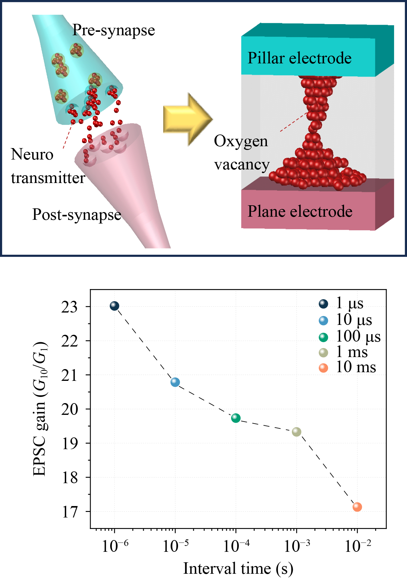 The emerging nonvolatile memory, three-dimensional vertical resistive random-access memory (VRRAM), inspired by the vertical NAND structure, has been proposed to replace NAND flash memory which has reached its integration limit. To improve the vertical ionic diffusion occurring in the conventional VRRAM structure, we propose a Pt/HfO2/TiO2/Ti self-aligned VRRAM with physically confined switching cells through sidewall thermal oxidation. We achieved stable bipolar switching, endurance (>104 cycles), and retention (>104 s) responses, and improved the interlayer leakage current issue through a distinctive self-aligned structure. Additionally, we elucidated the switching mechanism by analyzing current levels concerning ambient temperature. To utilize VRRAM for neuromorphic computing, the biological synaptic functions are emulated by applying pulse stimulation to the synaptic cell. The weight modulation of biological synapses is demonstrated based on potentiation, depression, spike-rate-dependent plasticity, and spike-timing-dependent plasticity. Additionally, we improve the pattern recognition rate by creating a linear conductance modulation with an incremental pulse train in pattern recognition simulations. The stable electrical characteristics and implementation of various synaptic functions demonstrate that self-aligned VRRAM is suitable for neuromorphic systems as a high-density synaptic device.