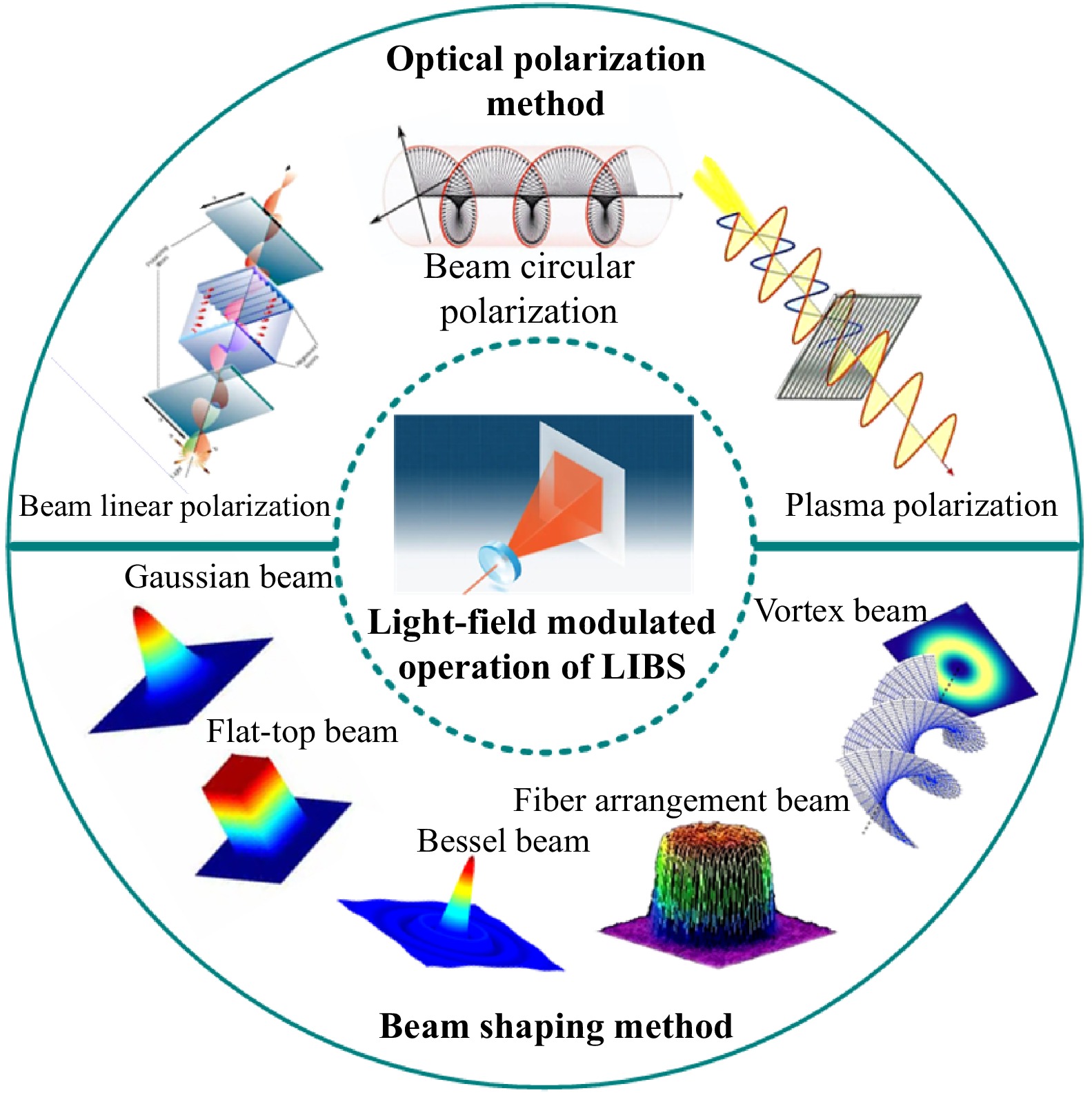 The simplicity and low-cost way to improve qualitative and quantitative analytical performance has always been a crucial concern for laser-induced breakdown spectroscopy (LIBS), and many scientists have been engaged in this evolving research direction. In this review, we investigated an update on recent developments in light-field modulated operation in LIBS. It covered a brief description of LIBS, optical polarization, and beam shaping. Here, the optical polarization is divided into laser beam polarization and plasma polarization. In addition, the methodology and development of light-field modulated LIBS were summarized and discussed. Finally, the existing problems with light-field modulated LIBS were presented, along with some of their own insights and the future direction of their development. This review will provide a guideline for LIBS researchers with basic knowledge, which is very useful in the signal optimization of LIBS research and applications.