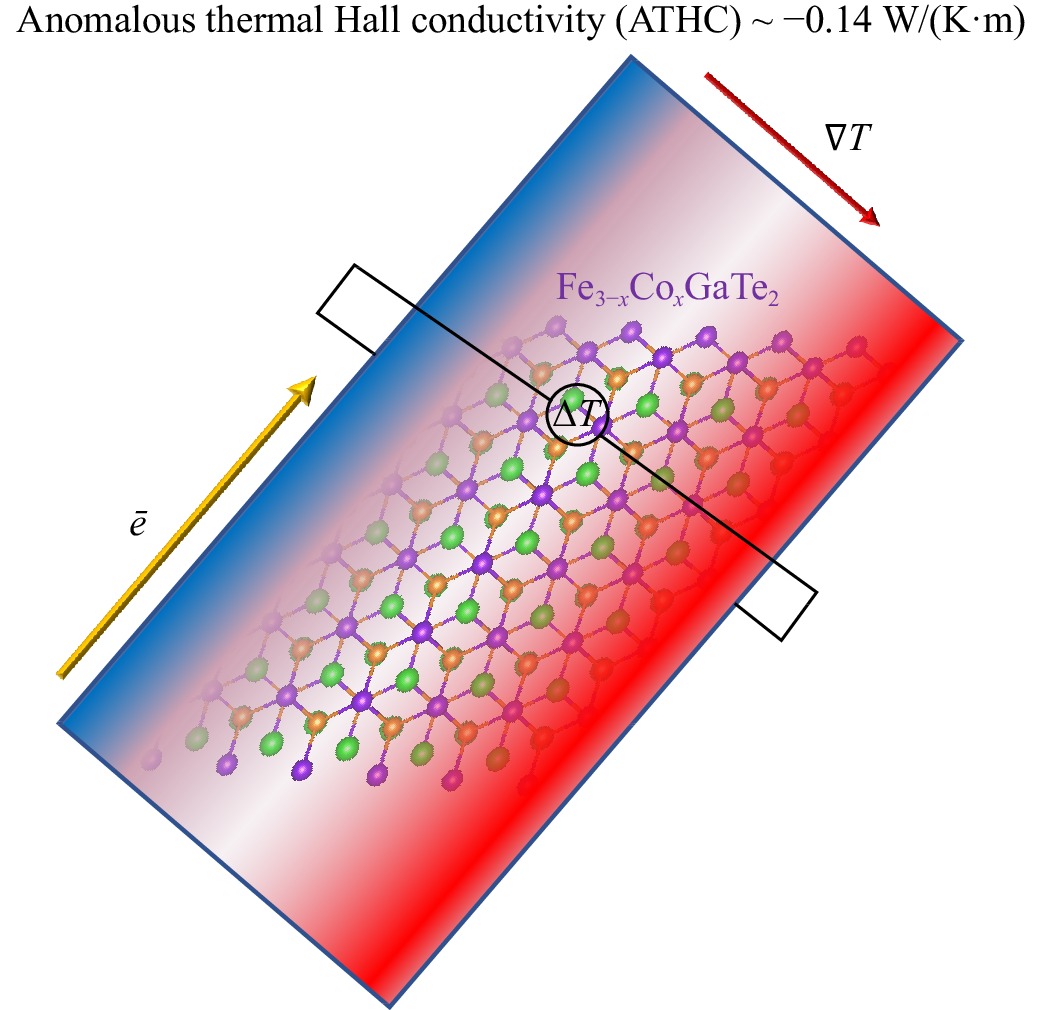 In spintronics, transverse anomalous transport properties have emerged as a highly promising avenue surpassing the conventional longitudinal transport behaviors. Here, we explore the transverse transport properties of monolayer and bilayer Fe3−xCoxGaTe2 (x = 0.083, 0.167, 0.250, and 0.330) systems. All the systems exhibit ferromagnetic ground states with metallic features and also have perpendicular magnetic anisotropy. Besides, the magnetic anisotropy is substantially enhanced with increasing Co-doping concentration. However, unlike magnetic anisotropy, the Curie temperature is suppressed by increasing the Co-doping concentration. For instance, the monolayer and bilayer Fe2.917Co0.083GaTe2 hold a Curie temperature of 253 K and 269 K, which decreases to 163 K and 173 K in monolayer and bilayer Fe2.67Co0.33GaTe2 systems, respectively. We find a giant anomalous Nernst conductivity (ANC) of 6.03 A/(K·m) in the monolayer Fe2.917Co0.083GaTe2 at −30 meV, and this is further enhanced to 11.30 A/(K·m) in the bilayer Fe2.917Co0.083GaTe2 at −20 meV. Moreover, the bilayer Fe2.917Co0.083GaTe2 structure has a large anomalous thermal Hall conductivity (ATHC) of −0.14 W/(K·m) at 100 K. Overall, we find that the Fe3−xCoxGaTe2 (x = 0.083, 0.167, 0.250, and 0.330) structures have better anomalous transverse transport performance than the pristine Fe3GaTe2 system and can be used for potential spintronics and spin caloritronics applications.