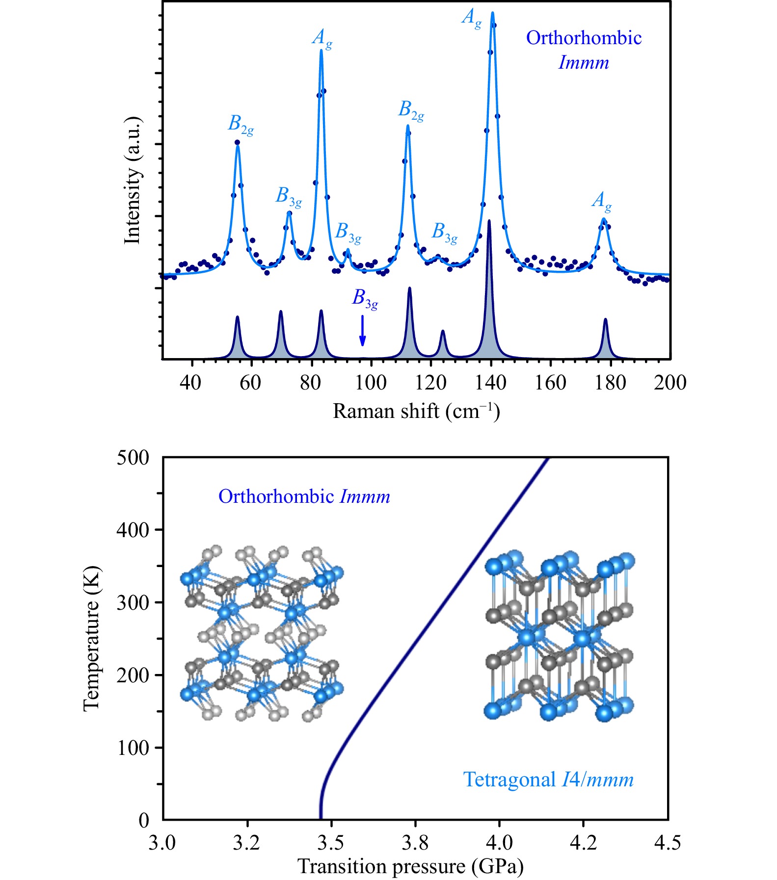 Results of the Raman scattering experiments, heat capacity measurements, ab initio simulations of the Raman spectra and pressure-induced phase transition in UTe2 single crystal are reported. Assignment of symmetries to particular Raman-active phonons follows directly from a comparative analysis of the measured and calculated Raman spectra. Theoretically determined lattice contribution to the specific heat of UTe2 allows for better description of its heat capacity measured over the temperatures ranging from 30 to 400 K. The orthorhombic-to-tetragonal phase transition pressure of 3.8 GPa is predicted at room temperature in very good agreement with the recent experimental studies. The phase transition remains almost phonon-independent with the transition pressure weakly temperature-dependent below 500 K. The strong local Coulomb correlations between U-5f electrons and spin−orbit interaction are shown to be important for realistic theoretical description of phonons and pressure-induced phase transition in UTe2.