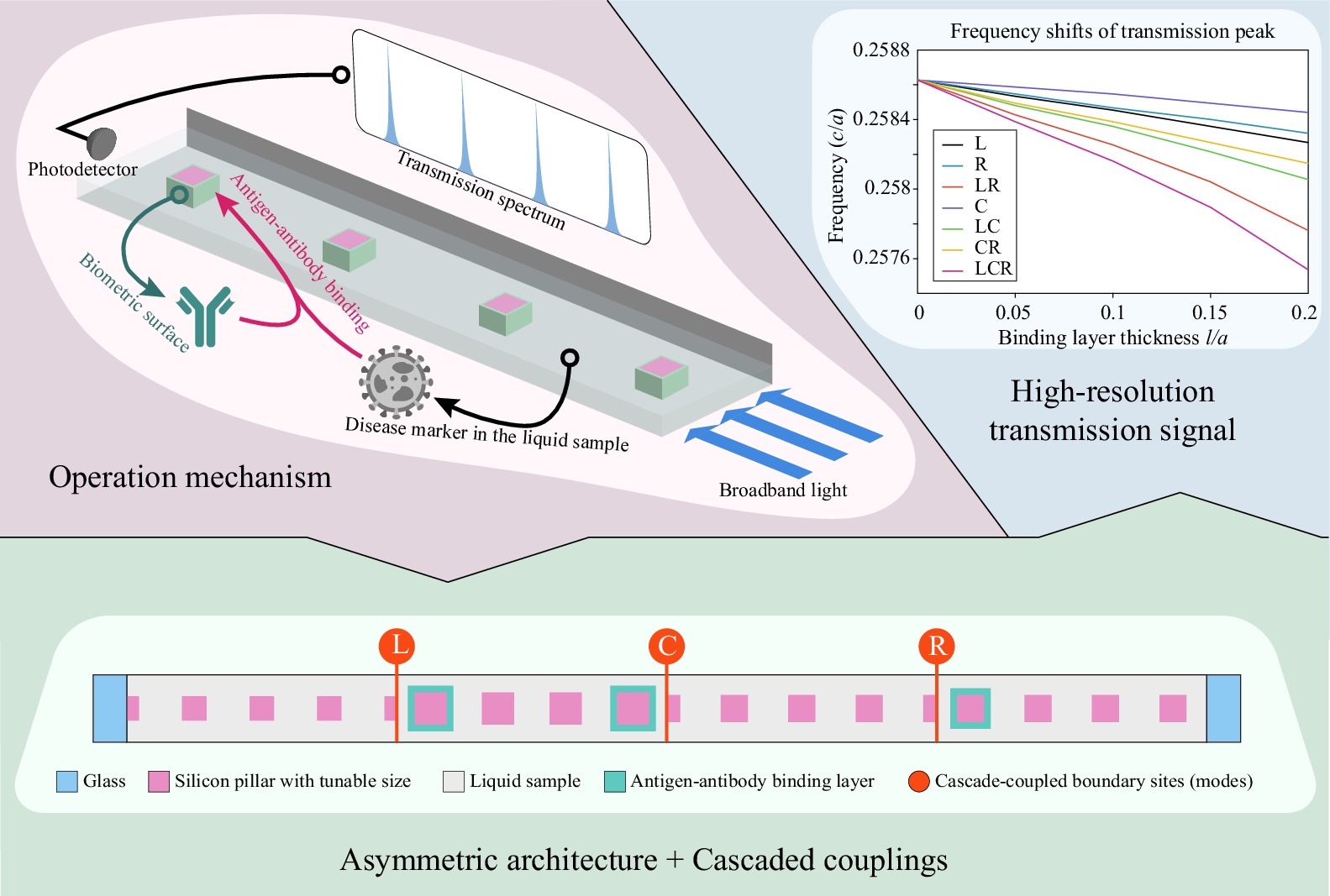 We propose a conceptual device for a multiplexed biosensor in a photonic crystal chip based on the Su–Schrieffer–Heeger mechanism. Remarkably, the proposed biosensor can identify three distinct disease markers through a single-shot photon transmission measurement, thanks to the couplings among the three Su–Schrieffer–Heeger boundary modes in the photonic crystal. Our biosensor design is more robust against defects and disorders that are inevitable in real-life device applications than previous designs. Such robustness is invaluable for achieving efficient, reliable, and integrated biosensing based on nanophotonic systems. We further demonstrate that various combinations of disease markers can be recognized via the photon transmission spectrum, thus unveiling a promising route toward high-performance, advanced biosensing for future biomedical technology.