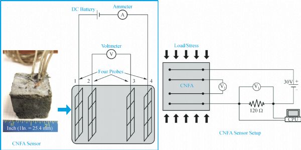 This paper presents an experimental study of shear-governed reinforced concrete columns subjected to different loading rates. Four typical short columns were tested cyclically with loading rate of 0.05, 1, 3, and 5 Hz, simulating seismic load. Test result indicated that the loading rate does not affect the column behavior when the rate is up to 5 Hz. Furthermore, Carbon Nano-Fiber Aggregates (CNFAs) were utilized as internal sensors to detect the damage in the column. The test result shows that the CNFAs work well sensing the structural behavior. The CNFA output was further quantitatively correlated to the structural damage level. Finally, a finite element analytical model was constructed to describe the behavior of short columns with shear failure. The analytical model successfully modeled the cyclic loading test results.
