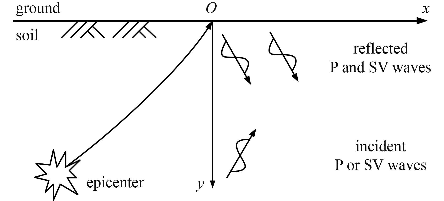 The seismic analysis of a viscoelastic half-space under two-dimensional (2D) oblique incident waves is carried out by the finite/infinite element method (FIEM). First, the frequency-domain exact solutions for the displacements and stresses of the free field are derived in general form for arbitrary incident P and SV waves. With the present formulation, no distinction needs to be made for SV waves with over-critical incident angles that make the reflected P waves disappear, while no critical angle exists for P waves. Next, the equivalent seismic forces of the earthquake (Taft Earthquake 1952) imposed on the near-field boundary are generated by combining the solutions for unit ground accelerations with the earthquake spectrum. Based on the asymmetric finite/infinite element model, the frequency-domain motion equations for seismic analysis are presented with the key parameters selected. The results obtained in frequency and time domain are verified against those of Wolf’s, Luco and de Barros’ and for inversely computed ground motions. The parametric study indicated that distinct phase difference exists between the horizontal and vertical responses for SV waves with over-critical incident angles, but not for under-critical incident angles. Other observations were also made for the numerical results inside the text.