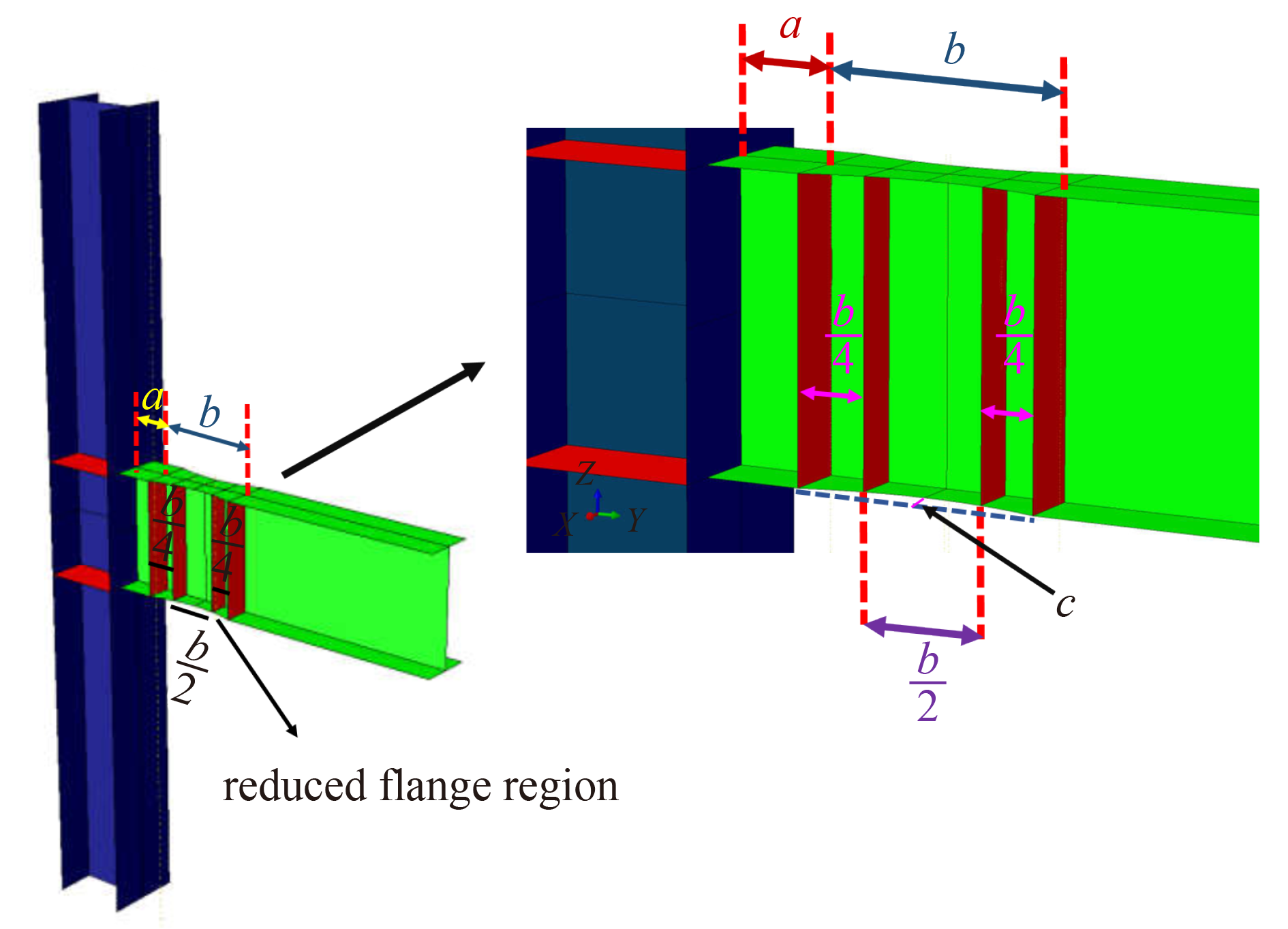 Reduced web section (RWS) connections can prevent lateral-torsional buckling and web local buckling experienced by reduced beam section (RBS) connections. In RWS connections, removing a large portion of web can result in shear demand intolerance induced to plastic hinge region. The present study aims to resolve the problems of RBS and RWS connections by proposing two new connections: (1) RBS with stiffener (RBS-ST) and (2) RBS with reduced web (RW-RBS) connections. In the first connection (RBS-ST), a series of stiffeners is connected to the beam in the reduced flange region, while the second connection (RW-RBS) considers both a reduction in flanges and a reduction in web. Five beam-to-column joints with three different connections, including RBS, RBS-ST, and RW-RBS connections were considered and simulated in ABAQUS. According to the results, RBS-ST and RW-RBS connections can decrease or even eliminate lateral-torsional buckling and web local buckling in RBS connection. It is important to note that RW-RBS connection is more effective in long beams with smaller shear demands in the plastic hinge region. Moreover, results showed that RBS and RW-RBS connections experienced strength degradation at 4% to 5% drift, while no strength degradation was observed in RBS-ST connection until 8% drift.