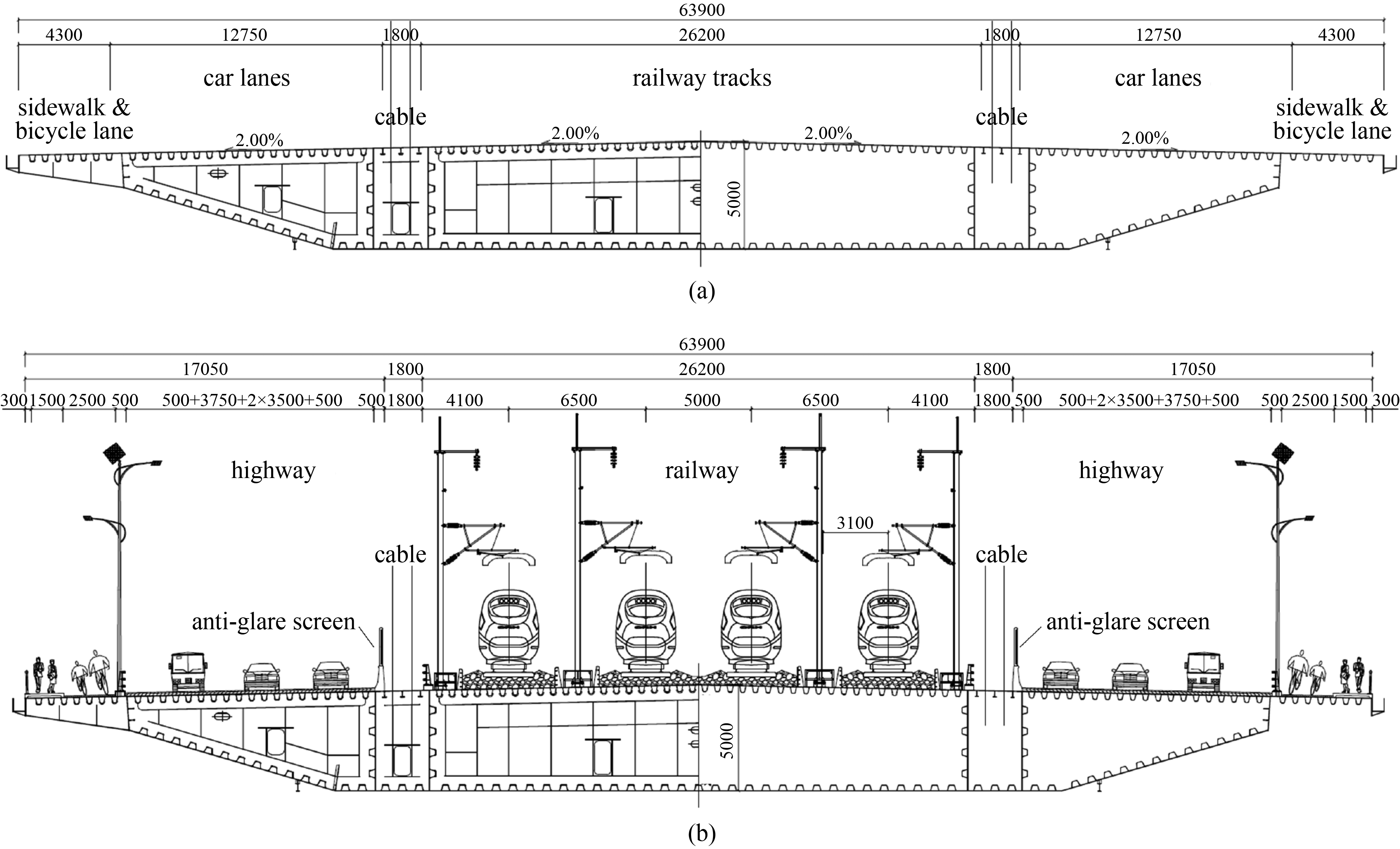 The newly-built single-level rail-cum-road bridge brings the issue of the aerodynamic impact of train-induced wind on road automobiles. This research introduced a validated computational fluid dynamics (CFD) model regarding this concern. Such an aerodynamic impact mechanism was explored; a relationship between the transverse distance between train and motor-van (hereinfafter referred to as van) and the aerodynamic effects on the van was explored to help the optimization of bridge decks, and the relationship between the automobile speed and aerodynamic variations of a van was fitted to help traffic control. The fitting results are accurate enough for further research. It is noted that the relative speed of the two automobiles is not the only factor that influences the aerodynamic variations of the van, even at a confirmed relative velocity, the aerodynamic variations of the van vary a lot as the velocity proportion changes, and the most unfavorable case shows an increase of over 40% on the aerodynamic variations compared to the standard case. The decay of the aerodynamic effects shows that not all the velocity terms would enhance the aerodynamic variations; the coupled velocity term constrains the variation amplitude of moments and decreases the total amplitude by 20%–40%.