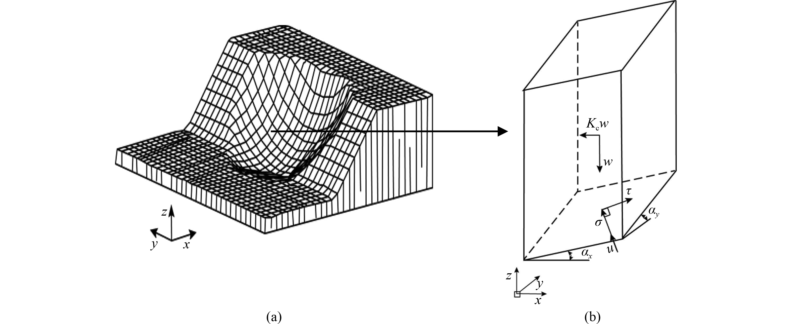 The failure criteria of practical soil mass are very complex, and have significant influence on the safety factor of slope stability. The Coulomb strength criterion and the power-law failure criterion are classically simplified. Each one has limited applicability owing to the noticeable difference between calculated predictions and actual results in some cases. In the work reported here, an analysis method based on the least square support vector machine (LSSVM), a machine learning model, is purposefully provided to establish a complex nonlinear failure criterion via iteration computation based on strength test data of the soil, which is of more extensive applicability to many problems of slope stability. In particular, three evaluation indexes including coefficient of determination, mean absolute percentage error, and mean square error indicate that fitting precision of the machine learning-based failure criterion is better than those of the linear Coulomb criterion and nonlinear power-law criterion. Based on the proposed LSSVM approach to determine the failure criterion, the limit equilibrium method can be used to calculate the safety factor of three-dimensional slope stability. Analysis of results of the safety factor of two three-dimensional homogeneous slopes shows that the maximum relative errors between the proposed approach and the linear failure criterion-based method and the power-law failure criterion-based method are about 12% and 7%, respectively.