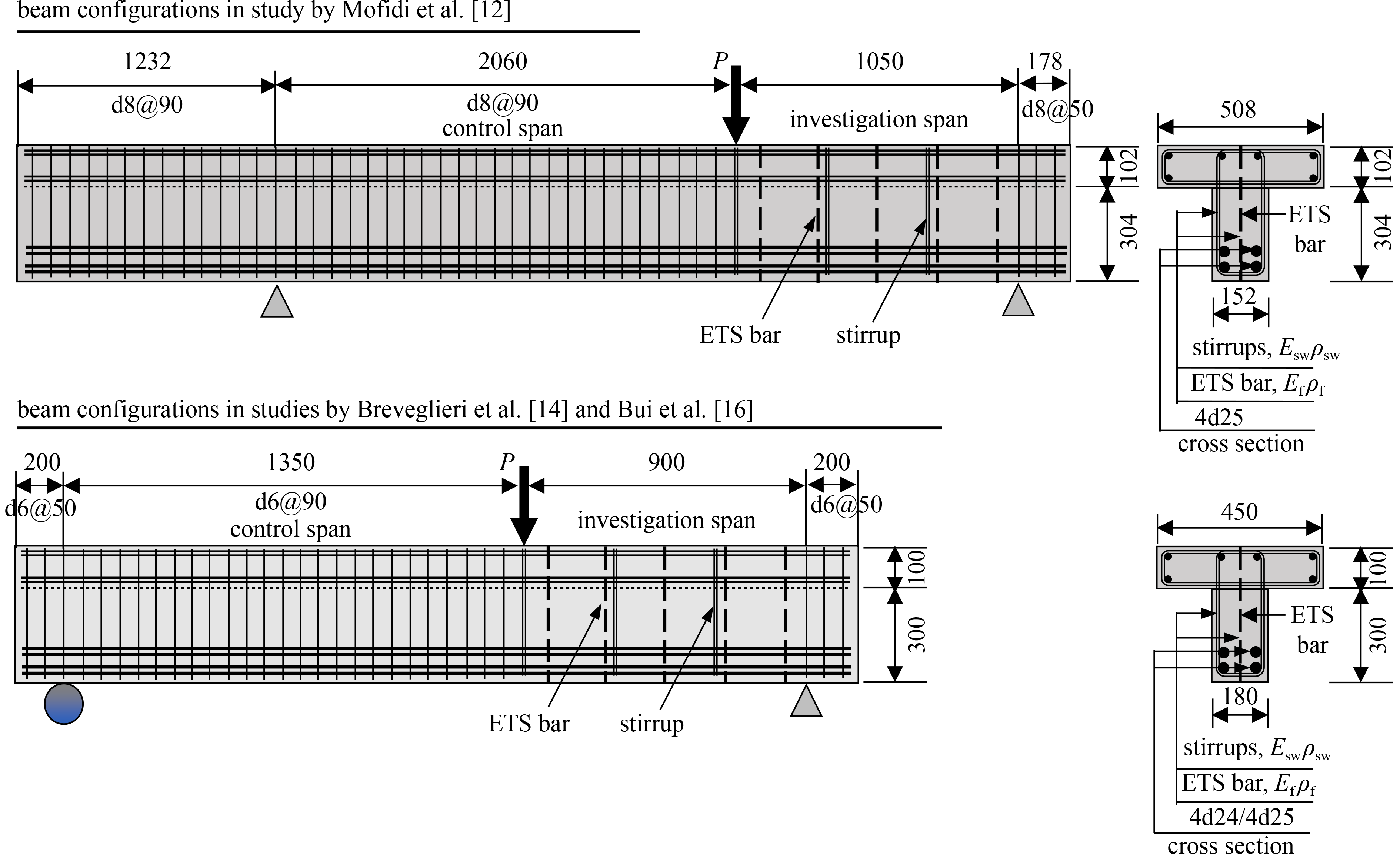 In this study, finite element (FE) analysis is utilized to investigate the shear capacity of reinforced concrete (RC) beams strengthened with embedded through-section (ETS) bars. Effects of critical variables on the beam shear strength, including the compressive strength of concrete, stiffness ratio between ETS bars and steel stirrups, and use of ETS strengthening system alone, are parametrically investigated. A promising method based on the bond mechanism between ETS strengthening and concrete is then proposed for predicting the shear resistance forces of the strengthened beams. An expression for the maximum bond stress of the ETS bars to concrete is developed. This new expression eliminates the difficulty in the search and selection of appropriate bond parameters from adhesion tests. The results obtained from the FE models and analytical models are validated by comparison with those measured from the experiments. Consequently, the model proposed in this study demonstrates better performance and more accuracy for prediction of the beam shear-carrying capacity than those of existing models. The results obtained from this study can also serve researchers and engineers in selection of the proper shear strength models for design of ETS-strengthened RC beams.