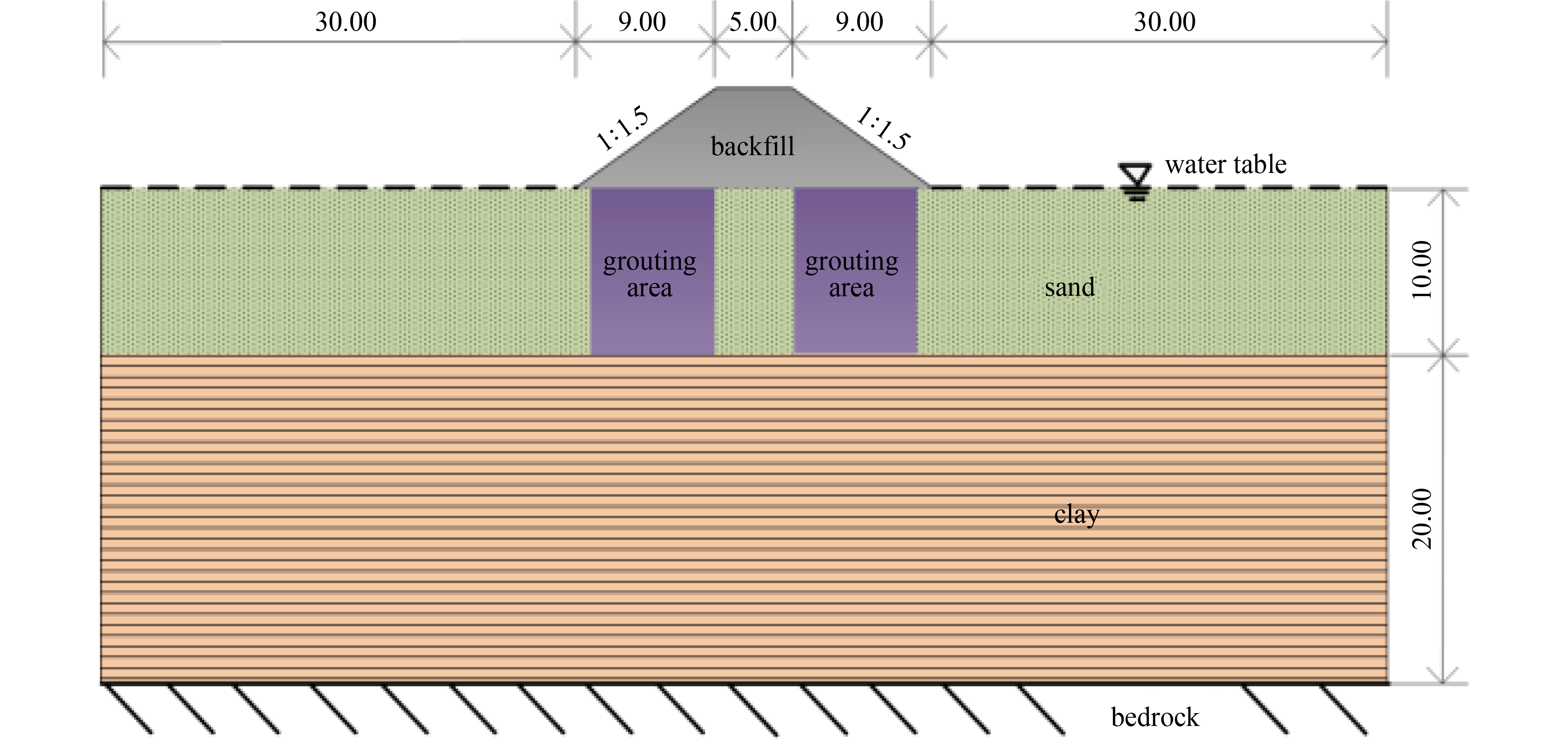 Liquefaction of sandy soils is a big threat to the stability and the safety of an earth embankment laid on saturated soils. A large number of liquefaction-induced damages on embankment due to different types of earthquakes have been reported worldwide. In this research, the dynamic behaviors of earth embankment and the reinforcement effects of grouting as remediation method, subjected to moderate earthquake EQ1 and strong earthquake EQ2, were numerically investigated. The seismic behaviors of ground composed of cohesionless sandy soil and cohesive clayey soil were uniformly described by the cyclic mobility (CM) model, which is capable of describing accurately the mechanical property of the soil due to monotonic and cyclic loadings by accounting for stress-induced anisotropy, over-consolidation, and soil structure. It is known from the numerical investigation that the embankment would experience destructive deformation, and that the collapse mode was closely related to the properties of input seismic motion because high intensities and long durations of an earthquake motion could lead to significant plastic deformation and prolonged soil liquefaction. Under the strong seismic loading of EQ2, a circular collapse surface, combined with huge settlement and lateral spread, occurred inside the liquefication zone and extended towards the embankment crest. In contrast, in moderate earthquake EQ1, upheaval was observed at each toe of the embankment, and instability occurred only in the liquefied ground. An anti-liquefaction remediation via grouting was determined to significantly reduce liquefaction-induced deformation (settlement, lateral spreading, and local uplift) and restrain the deep-seated circular sliding failure, even though the top sandy soil liquefied in both earthquakes. When the structure was subjected to EQ2 motion, local failure occurred on the embankment slope reinforced with grouting, and thus, an additional appropriate countermeasure should be implemented to further strengthen the slope. For both input motions, the surface deformation of the considered embankment decreased gradually as the thickness of reinforcement was increased, although the reinforcement effect was no longer significant once the thickness exceeded 6 m.