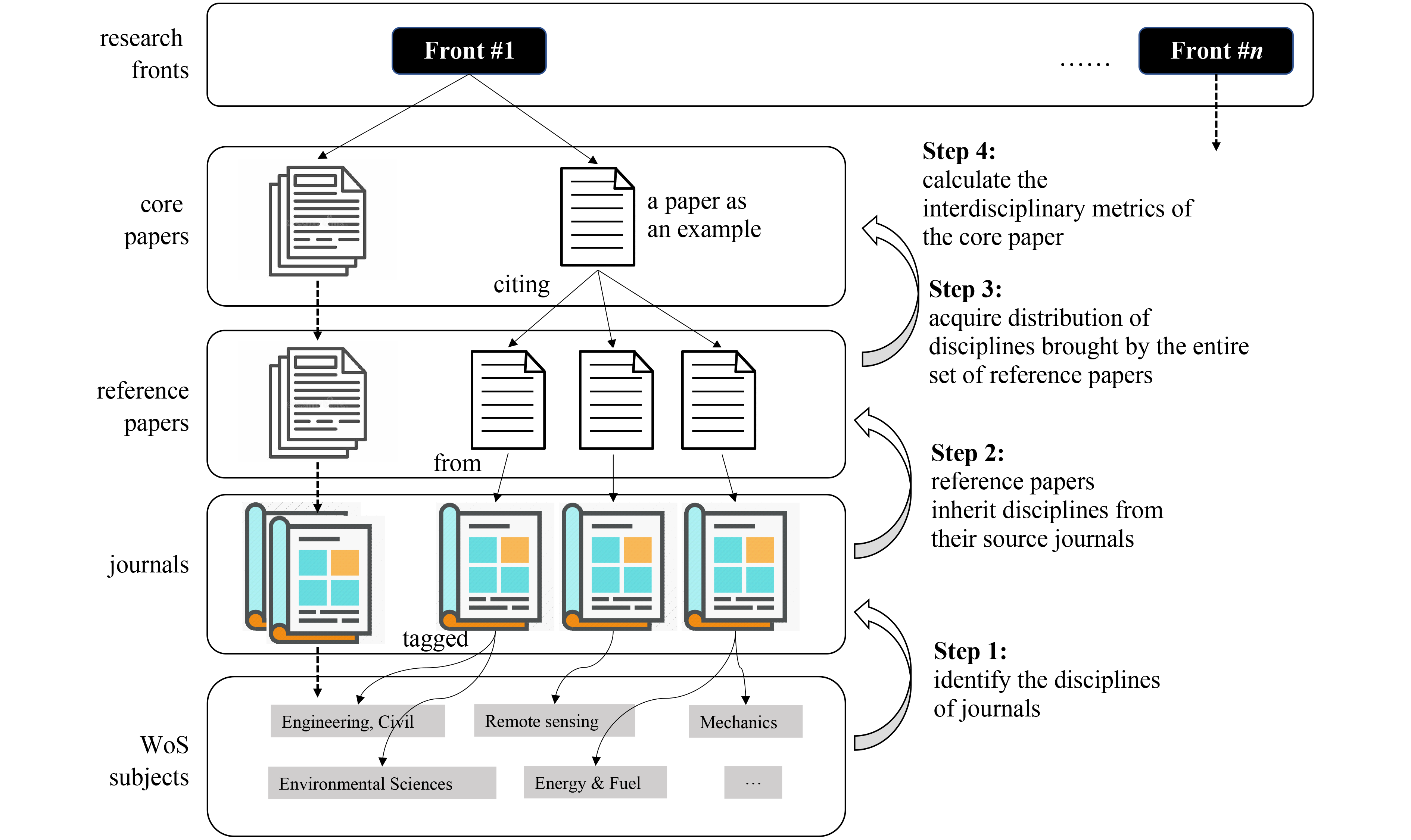 Interdisciplinary research is considered a source of innovativeness and creativity, serving as a key mechanism for creating recombination necessary for the evolution of science systems. The aim of this study is to quantitatively establish the connection between interdisciplinary research and the research fronts that have recently emerged in civil engineering. The degree of interdisciplinarity of the research fronts was measured by developing metrics from bibliographic analyses. As indicated by the consistent increase in the metrics of interdisciplinarity over time, research fronts tend to emerge in studies with increasing diversity in the disciplines involved. The active disciplines involved in the fronts vary over time. The most active disciplines are no longer fundamental but those associated with energy, environment, and sustainable development, focusing on solutions to climate change and integrating intelligence technologies.