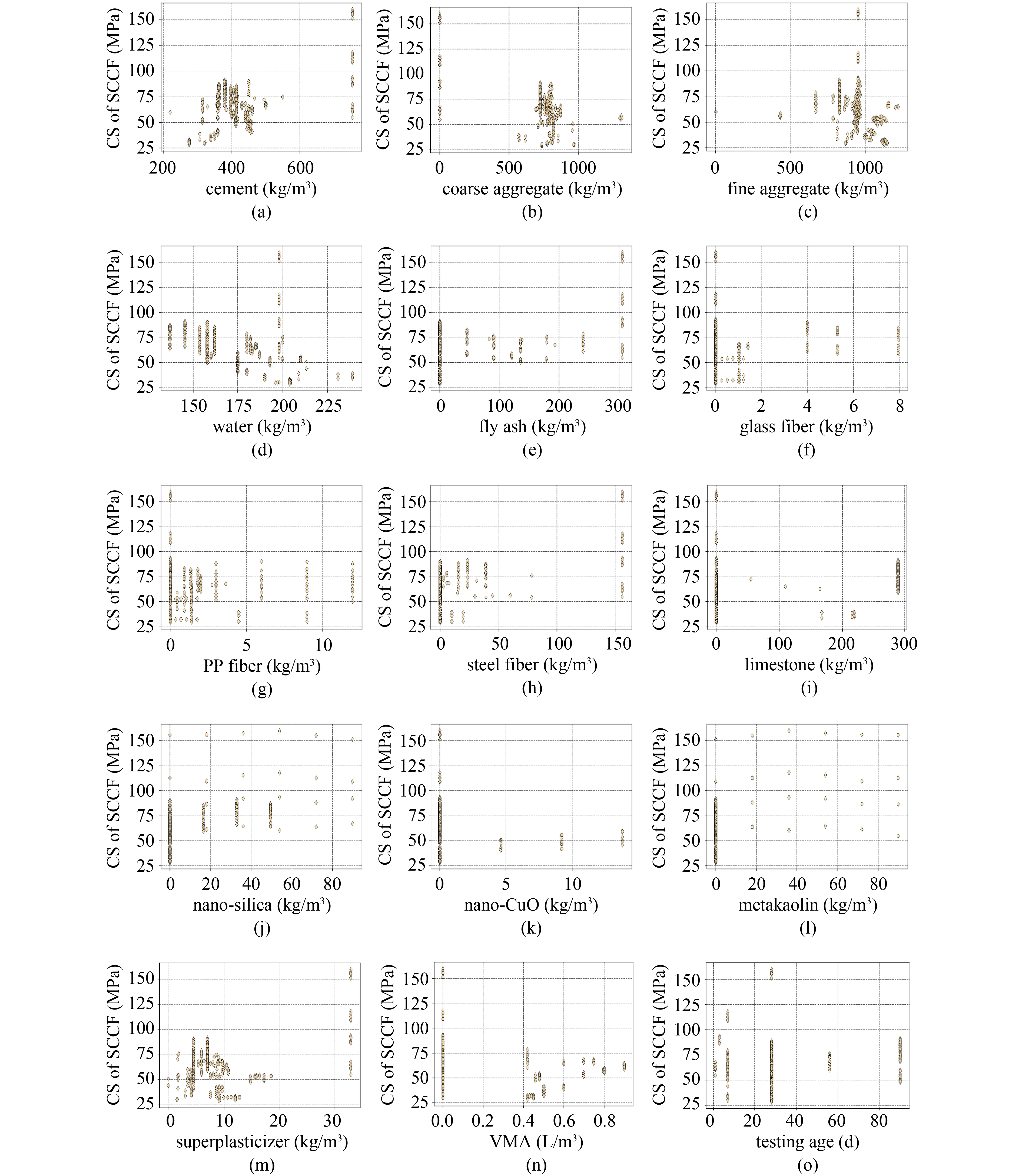 Fiber-reinforced self-compacting concrete (FRSCC) is a typical construction material, and its compressive strength (CS) is a critical mechanical property that must be adequately determined. In the machine learning (ML) approach to estimating the CS of FRSCC, the current research gaps include the limitations of samples in databases, the applicability constraints of models owing to limited mixture components, and the possibility of applying recently proposed models. This study developed different ML models for predicting the CS of FRSCC to address these limitations. Artificial neural network, random forest, and categorical gradient boosting (CatBoost) models were optimized to derive the best predictive model with the aid of a 10-fold cross-validation technique. A database of 381 samples was created, representing the most significant FRSCC dataset compared with previous studies, and it was used for model development. The findings indicated that CatBoost outperformed the other two models with excellent predictive abilities (root mean square error of 2.639 MPa, mean absolute error of 1.669 MPa, and coefficient of determination of 0.986 for the test dataset). Finally, a sensitivity analysis using a partial dependence plot was conducted to obtain a thorough understanding of the effect of each input variable on the predicted CS of FRSCC. The results showed that the cement content, testing age, and superplasticizer content are the most critical factors affecting the CS.
