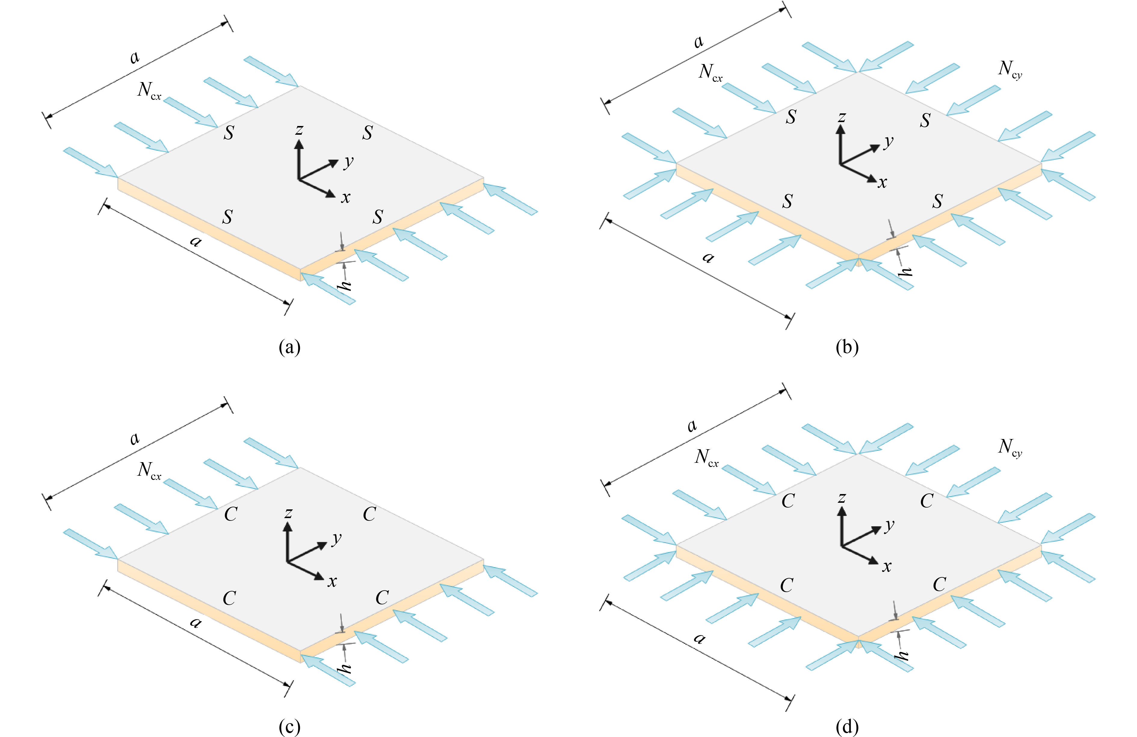 In this study, the mechanical properties of the composite plate were considered Gaussian random fields and their effects on the buckling load and corresponding mode shapes were studied by developing a semi-analytical non-intrusive approach. The random fields were decomposed by the Karhunen−Loève method. The strains were defined based on the assumptions of the first-order and higher-order shear-deformation theories. Stochastic equations of motion were extracted using Euler–Lagrange equations. The probabilistic response space was obtained by employing the non-intrusive polynomial chaos method. Finally, the effect of spatially varying stochastic properties on the critical load of the plate and the irregularity of buckling mode shapes and their sequences were studied for the first time. Our findings showed that different shear deformation plate theories could significantly influence the reliability of thicker plates under compressive loading. It is suggested that a linear relationship exists between the mechanical properties’ variation coefficient and critical loads’ variation coefficient. Also, in modeling the plate properties as random fields, a significant stochastic irregularity is obtained in buckling mode shapes, which is crucial in practical applications.