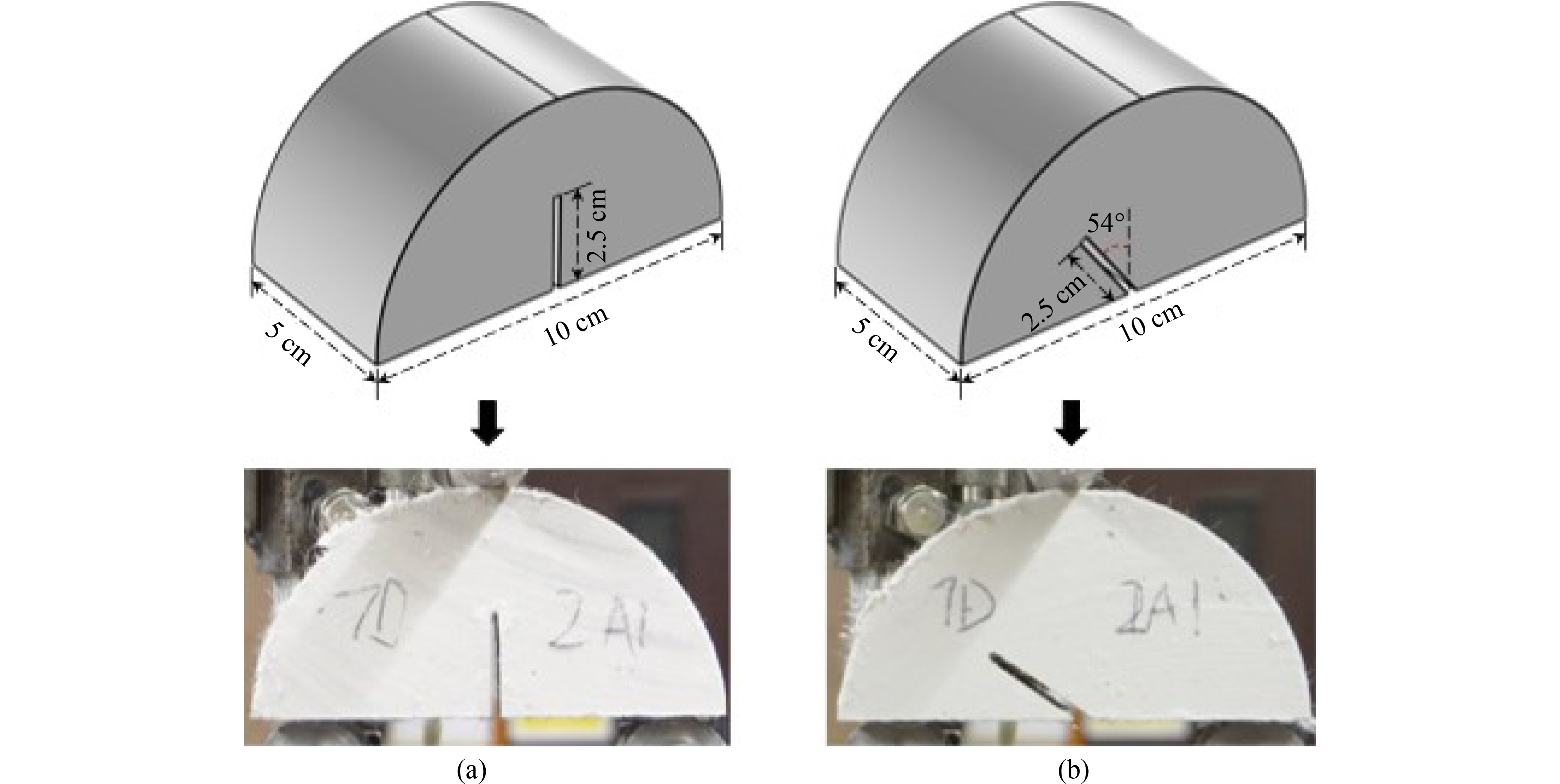 The curing temperature-dependent cement hydration causes the nonlinear evolution of fracture behavior and properties of fiber-reinforced cemented paste backfill (CPB) and thus influences the stability of mine backfill materials in deep mines. Therefore, the coupled effect of curing temperature (20, 35, and 45 °C) and cement hydration at different curing times (3, 7, and 28 d) on the mode-I and mode-II fracture behavior and properties of fiber-reinforced CPB is investigated. A comprehensive experimental testing program consisting of semicircular bend tests, direct shear tests, measurement of volumetric water content and matric suction, TG/DTG tests, and SEM observation is carried out. The results show that the coupled thermochemical effect results in strongly nonlinear development of pre- and post-peak behavior of fiber-reinforced CPB. Moreover, the results discover a positive linear correlation between fracture toughness and shear strength parameters and also reveal the vital role played by matric suction in the formation of fracture toughness. Furthermore, predictive functions are developed to estimate the coupled thermochemical effect on the development of KIc and KIIc. Therefore, the findings and the developed mathematical tools have the potential to promote the successful application of fiber-reinforced CPB technology in deep underground mines.