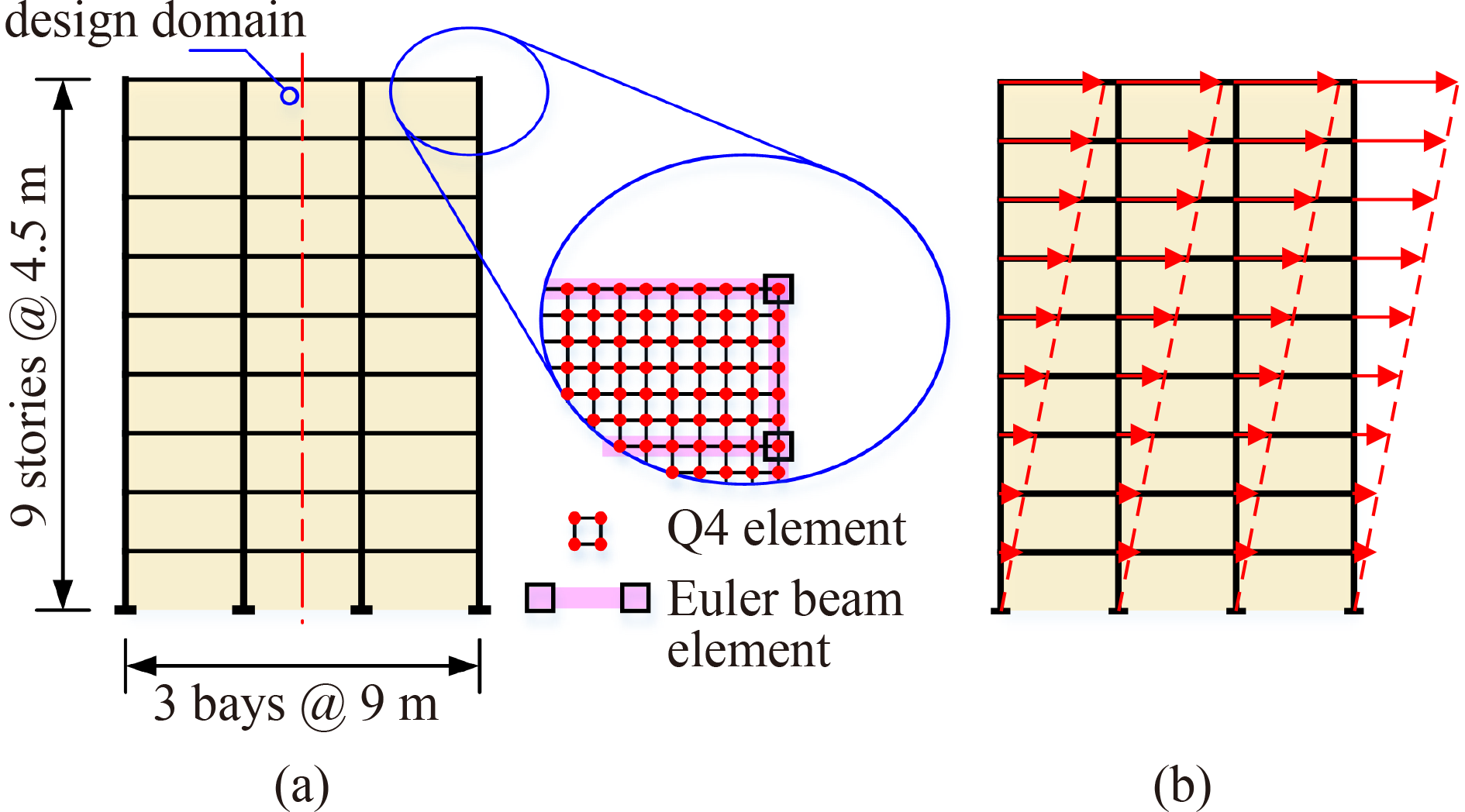 An approach to control the profiles of interstory drift ratios along the height of building structures via topology optimization is proposed herein. The theoretical foundation of the proposed approach involves solving a min–max optimization problem to suppress the maximum interstory drift ratio among all stories. Two formulations are suggested: one inherits the bound formulation and the other utilizes a p-norm function to aggregate all individual interstory drift ratios. The proposed methodology can shape the interstory drift ratio profiles into inverted triangular or quadratic patterns because it realizes profile control using a group of shape weight coefficients. The proposed formulations are validated via a series of numerical examples. The disparity between the two formulations is clear. The optimization results show the optimal structural features for controlling the interstory drift ratios under different requirements.