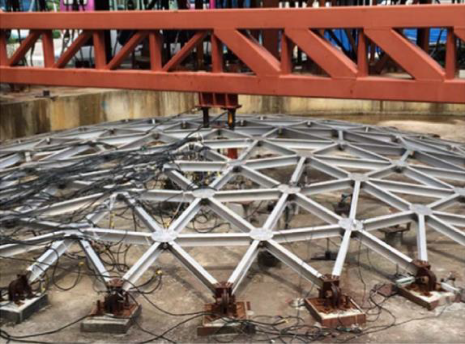 In this study, a numerical analysis was conducted on aluminum alloy reticulated shells (AARSs) with gusset joints under fire conditions. First, a thermal-structural coupled analysis model of AARSs considering joint semi-rigidity was proposed and validated against room-temperature and fire tests. The proposed model can also be adopted to analyze the fire response of other reticulated structures with semi-rigid joints. Second, a parametric analysis was conducted based on the numerical model to explore the buckling behavior of K6 AARS with gusset joints under fire conditions. The results indicated that the span, height-to-span ratio, height of the supporting structure, and fire power influence the reduction factor of the buckling capacity of AARSs under fire conditions. In contrast, the reduction factor is independent of the number of element divisions, number of rings, span-to-thickness ratio, and support condition. Subsequently, practical design formulae for predicting the reduction factor of the buckling capacity of K6 AARSs were derived based on numerical analysis results and machine learning techniques to provide a rapid evaluation method. Finally, further numerical analyses were conducted to propose practical design suggestions, including the conditions of ignoring the ultimate bearing capacity analysis of K6 AARS and ignoring the radiative heat flux.
