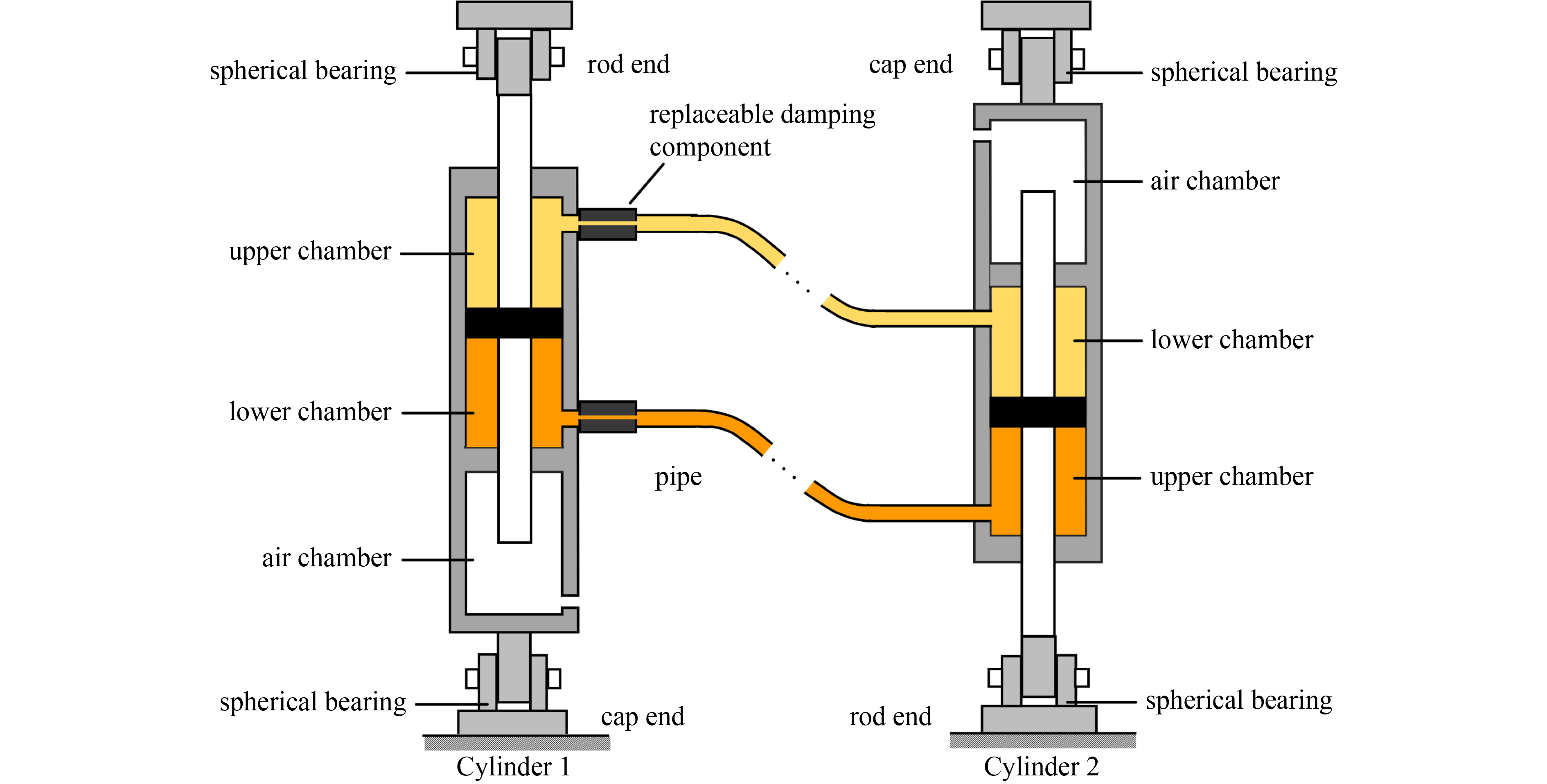 A new rocking constraint device (RCD) is developed for three-dimensional (3D) base-isolated frame structures by connecting a custom-designed cylinder pair to provide vertical damping with replaceable damping components installed outside the cylinders when the superstructure undergoes translational motion, and rocking constraint capacity when the superstructure is susceptible to rocking. Theoretical formulas for calculating the damping and rocking constraint stiffness of the RCD are proposed. Two series of sinusoidal loading tests are conducted at different loading frequencies and amplitudes to verify the damping and rocking constraint performance of the RCD. The test results show that the cylinder without orifices on its piston can provide the desired damping with a replaceable damping component, and that the RCD can effectively suppress rocking. Although the vertical stiffness of an individual cylinder is affected by the location of the replaceable damping component and loading frequency, the average vertical stiffness of the two cylinders, which determines the rocking constraint stiffness of the RCD, is independent of the two factors. Comparisons of the test and theoretical results indicate that the errors of the proposed formulas for calculating the damping and rocking constraint stiffness of the RCD do not exceed 12.9% and 11.0%, respectively.