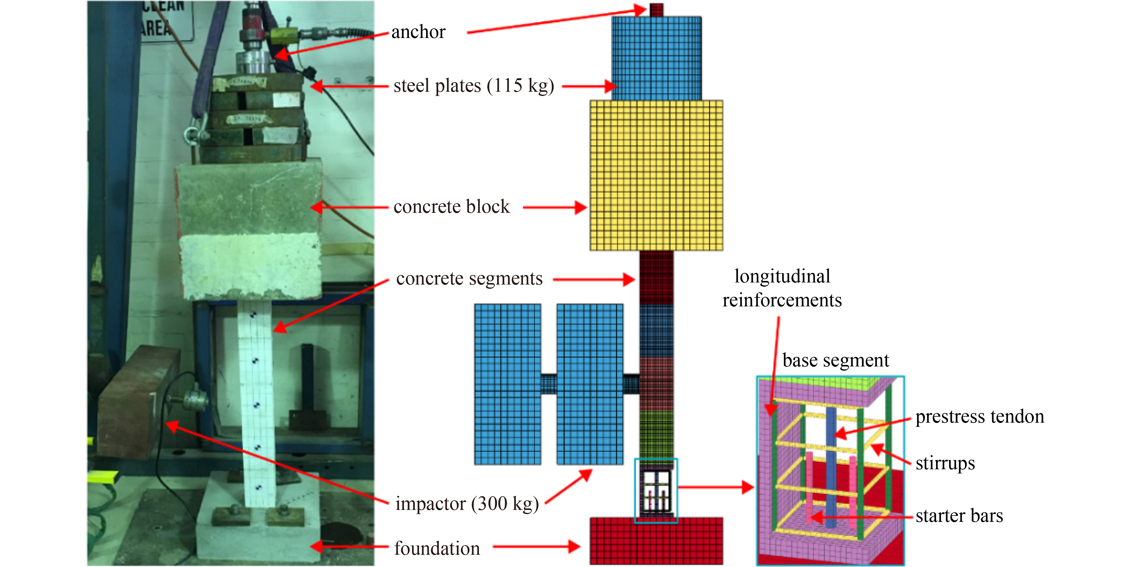 Considering the wide application of precast segmental bridge columns (PSBCs) in engineering practice, impact-resistant performance has gained significant attention. However, few studies have focused on PSBCs subjected to high-energy impacts caused by heavy truck collisions. Therefore, the behavior of PSBCs under a heavy truck impact was investigated in this study using high-fidelity finite element (FE) models. The detailed FE modeling methods of the PSBCs and heavy trucks were validated against experimental tests. The validated modeling methods were employed to simulate collisions between PSBCs and heavy trucks. The simulation results demonstrated that the engine and cargo caused two major peak impact forces during collision. Subsequently, the impact force, failure mode, displacement, and internal force of the PSBCs under heavy truck impacts were scrutinized. An extensive study was performed to assess the influence of the section size, truck weight, impact velocity, and number of precast segments on the impact responses. The truck weight was found to have a minor effect on the engine impact force. Damage was found to be localized at the bottom of the three segments, with the top remaining primarily undamaged. This parametric study demonstrated that larger cross-sections may be a preferred option to protect PSBCs against the impact of heavy trucks.