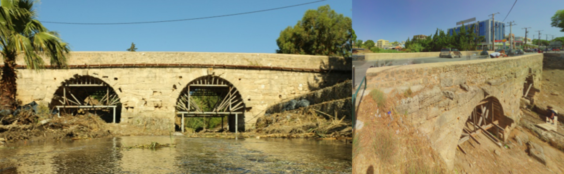 Seismic analysis of historical masonry bridges is important for authorities in all countries hosting such cultural heritage assets. The masonry arch bridge investigated in this study was built during the Roman period and is on the island of Rhodes, in Greece. Fifteen seismic records were considered and categorized as far-field, pulse-like near-field, and non-pulse-like near-field. The earthquake excitations were scaled to a target spectrum, and nonlinear time-history analyses were performed in the transverse direction. The performance levels were introduced based on the pushover curve, and the post-earthquake damage state of the bridge was examined. According to the results, pulse-like near-field events are more damaging than non-pulse-like near-field ground motions. Additionally the bridge is more vulnerable to far-field excitations than near-field events. Furthermore, the structure will suffer extensive post-earthquake damage and must be retrofitted.