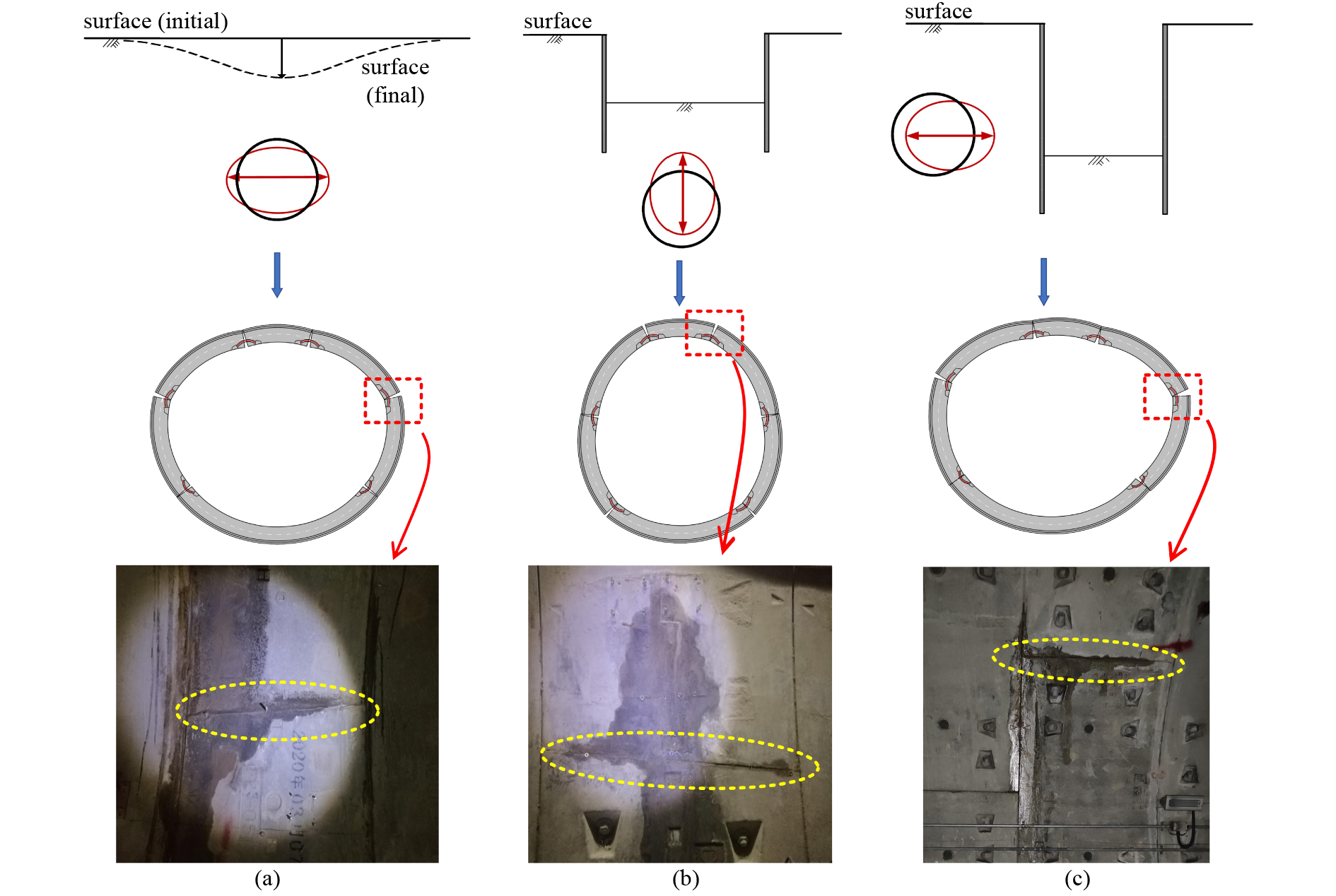 Groundwater leakage in shield tunnels poses a threat to the safety and durability of tunnel structures. Disturbance of adjacent constructions during the operation of shield tunnels frequently occurs in China, leading to deformation of tunnel lining and leakage in joints. Understanding the impact of adjacent constructions on the waterproofing performance of the lining is critical for the protection of shield tunnels. In this study, the weakening behavior of waterproof performance was investigated in the joints of shield tunnels under transverse deformation induced by adjacent construction. First, the relationship between the joint opening and transverse deformation under three typical adjacent constructions (upper loading, upper excavation, and side excavation) was investigated via elaborate numerical simulations. Subsequently, the evolution of the waterproof performance of a common gasket with a joint opening was examined by establishing a coupled Eulerian–Lagrangian model of joint seepage, and a formula describing the relationship between waterproof performance and joint opening was proposed. Finally, the weakening law of waterproofing performance was investigated based on the results of the aforementioned studies. It was determined that the joints with the greatest decline in waterproof performance were located at the tunnel shoulder in the upper loading case, tunnel crown in the upper excavation case, and tunnel shoulder in the side excavation case. When the waterproof performance of these joints decreased to 50% and 30%, the transverse deformations were 60 and 90 mm under upper loading, 90 and 140 mm under upper excavation, and 45 and 70 mm under side excavation, respectively. The results provide a straightforward reference for setting a controlled deformation standard considering the waterproof performance.