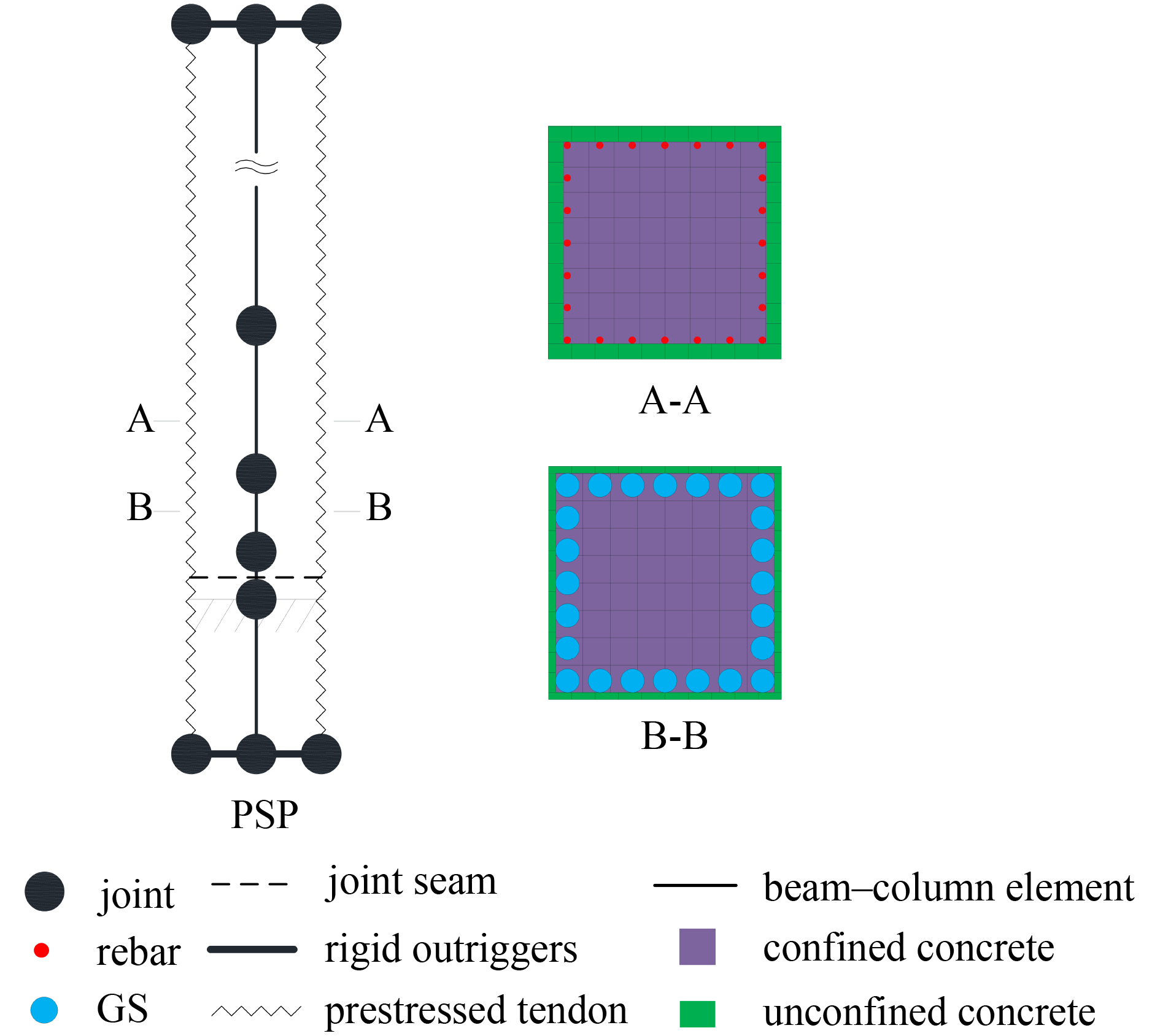 The seismic performance of a fully fabricated bridge is a key factor limiting its application. In this study, a fiber element model of a fabricated concrete pier with grouting sleeve-prestressed tendon composite connections was built and verified. A numerical analysis of three types of continuous girder bridges was conducted with different piers: a cast-in-place reinforced concrete pier, a grouting sleeve-fabricated pier, and a grouting sleeve-prestressed tendon composite fabricated pier. Furthermore, the seismic performance of the composite fabricated pier was investigated. The results show that the OpenSees fiber element model can successfully simulate the hysteresis behavior and failure mode of the grouted sleeve-fabricated pier. Under traditional non-near-fault ground motions, the pier top displacements of the grouting sleeve-fabricated pier and the composite fabricated pier were less than those of the cast-in-place reinforced concrete pier. The composite fabricated pier had a good self-centering capability. In addition, the plastic hinge zones of the grouting sleeve-fabricated pier and the composite fabricated pier shifted to the joint seam and upper edge of the grouting sleeve, respectively. The composite fabricated pier with optimal design parameters has good seismic performance and can be applied in high-intensity seismic areas; however, the influence of pile-soil interaction on its seismic performance should not be ignored.