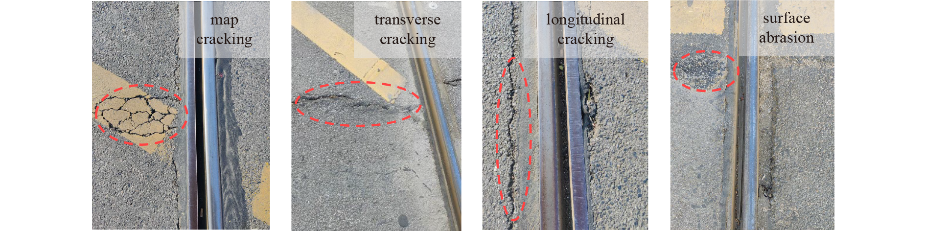 The grade crossings and adjacent pavements of urban trams are generally subjected to complex load conditions and are susceptible to damage. Therefore, in this study, a novel pavement structure between tram tracks and roads constructed using polyurethane (PU) elastic concrete and ultra-high-performance concrete (UHPC), referred to as a track-road transitional pavement (TRTP), is proposed. Subsequently, its performance and feasibility are evaluated using experimental and numerical methods. First, the mechanical properties of the PU elastic concrete are evaluated. The performance of the proposed structure is investigated using a three-dimensional finite element model, where vehicle-induced dynamic and static loads are considered. The results show that PU elastic concrete and the proposed combined TRTP are applicable and functioned as intended. Additionally, the PU elastic concrete achieved sufficient performance. The recommended width of the TRTP is approximately 50 mm. Meanwhile, the application of UHPC under a PU elastic concrete layer significantly reduces vertical deformation. Results of numerical calculations confirmed the high structural performance and feasibility of the proposed TRTP. Finally, material performance standards are recommended to provide guidance for pavement design and the construction of tram-grade crossings in the future.
